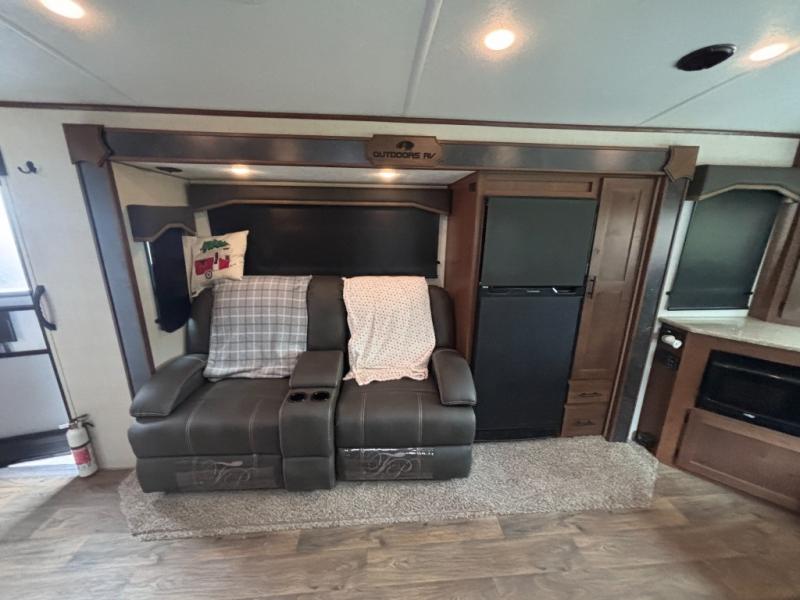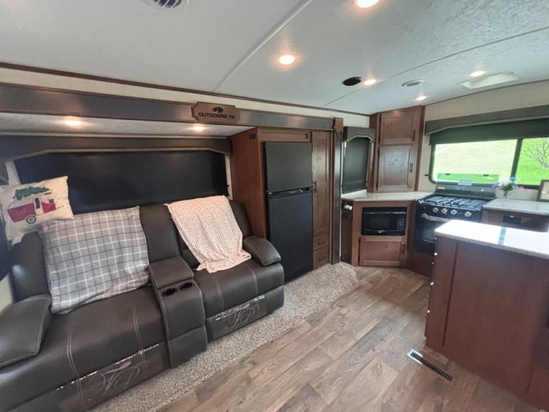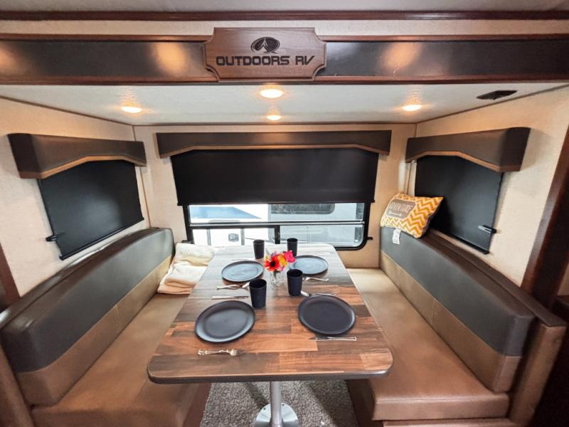 With any Black Stone Mountain Series travel trailer by Outdoors RV you will enjoy climate designed four seasons camping thanks to the thermal pane windows and the fully enclosed, heated, and insulated underbelly. The custom built chassis and rugged integrated A-frame are built for strength and durability, along with the rugged 2" bonded aluminum frame walls. Each model includes LG solid surface countertops, granite designed backsplash, vaulted radius ceilings, and a mountain comfort premium mattress for all-around comfort. You will also love the XL panoramic slide out windows and the dual pane living room skylight with a shade to let natural light in!