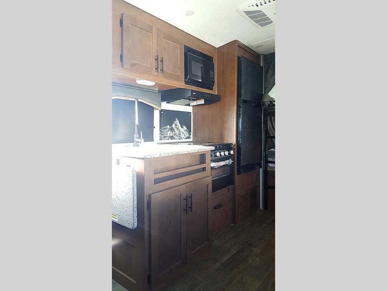 Each Creek Side Mountain Series travel trailer by Outdoors RV is designed for mountain tough four seasons camping for all your adventures. You'll find mountain extreme thermal pane windows, triple layered four seasons roof insulation, and a unique heated, insulated holding tank design. The compact design is compatible for light duty tow vehicles and smaller campsites, so you may not even need to purchase a new vehicle to start camping. Each model includes LG solid surface countertops, ultra leather furniture, and XL panoramic slide out windows for great outdoor views. These travel trailers also feature a mountain comfort premium mattress, 12V USB ports on either side of the bed, and XL bed nightstands for convenient storage.