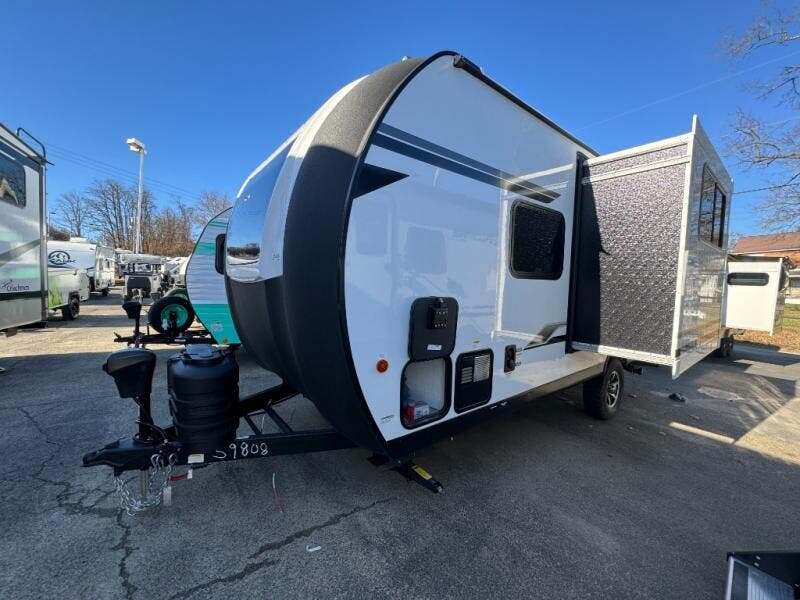 Enjoy the peace and quiet of the great outdoors with one of these Palomino PaloMini travel trailers! The light weight vacuum bonded and Azdel construction make them easier to tow and promote better fuel efficiency. You will also appreciate how easy the gel coat fiberglass exterior is to clean and maintain, and the front cap with windshield comes with Line X protectant. With LED interior lights, you can clearly see the beautiful maple hand glazed cabinets and they also use less power. In addition to the standard features, you can add optional features like the optional Off Road package which adds an extra 4" to the exterior height, has a lift kit, and 28" mudder tires so you can go off the beaten path. Come find your favorite one today!
