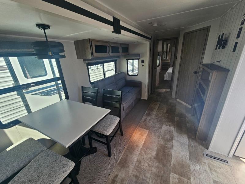 If you're looking for family-fun adventure then you need one of these Palomino Puma fifth wheels or travel trailers! They are built rugged, easy to tow, and jam packed with features. The Darco wrapped underbelly will protect your units vitals through every season and the AlphaPly roofing membrane covers it. They also have super lube axles and a powder coated frame. Their luxurious interiors feature a spice rack and built-in knife rack in the kitchen, USB charging ports to keep your electronics at 100%, and high density foam mattresses for a good night's rest. The required Advantage package comes with night roller shades for privacy at night, two outside speakers to crank up the tunes while you play cornhole, and an outside shower to keep the dirt outside where it belongs, plus so much more!