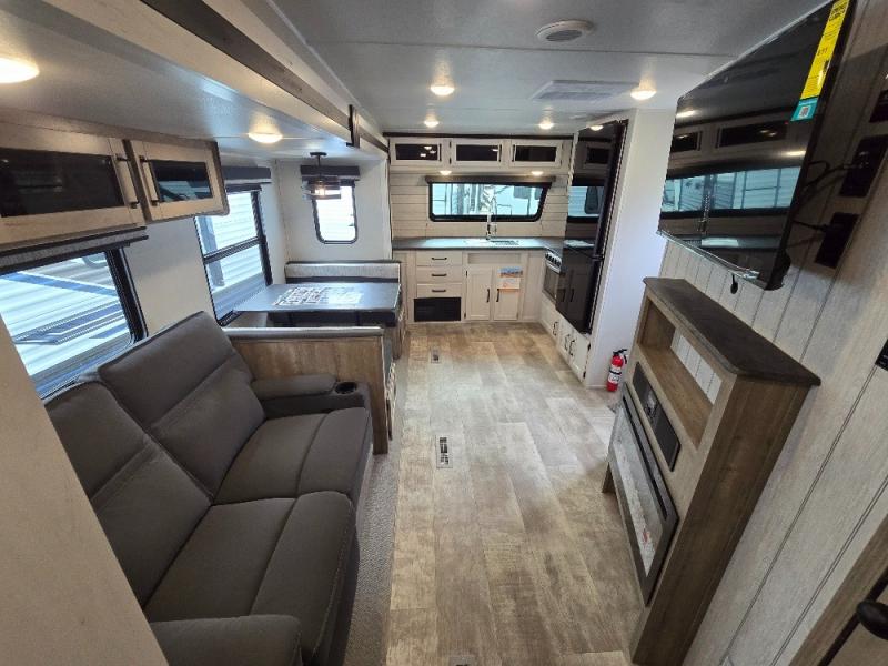 If you're looking for family-fun adventure then you need one of these Palomino Puma fifth wheels or travel trailers! They are built rugged, easy to tow, and jam packed with features. The Darco wrapped underbelly will protect your units vitals through every season and the AlphaPly roofing membrane covers it. They also have super lube axles and a powder coated frame. Their luxurious interiors feature a spice rack and built-in knife rack in the kitchen, USB charging ports to keep your electronics at 100%, and high density foam mattresses for a good night's rest. The required Advantage package comes with night roller shades for privacy at night, two outside speakers to crank up the tunes while you play cornhole, and an outside shower to keep the dirt outside where it belongs, plus so much more!