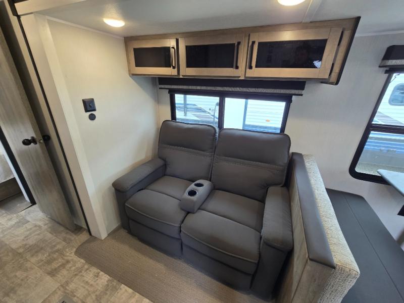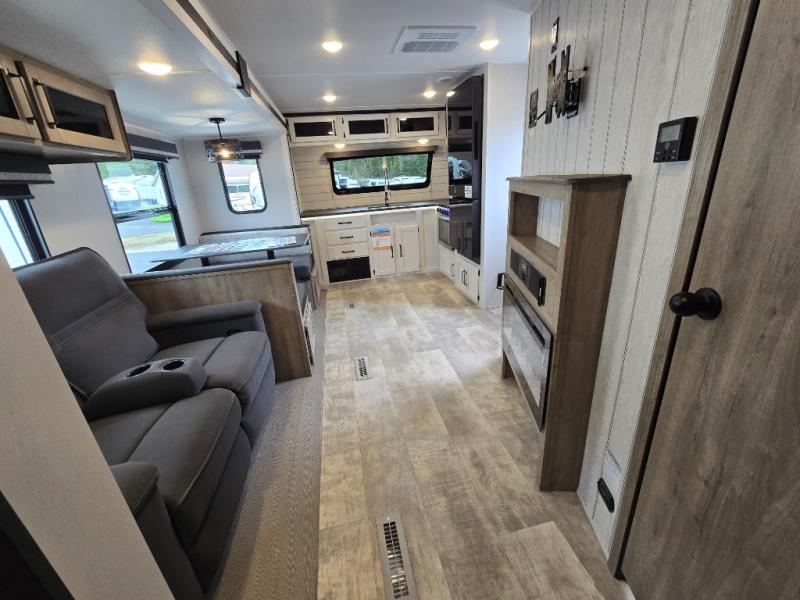 If you're looking for family-fun adventure then you need one of these Palomino Puma fifth wheels or travel trailers! They are built rugged, easy to tow, and jam packed with features. The Darco wrapped underbelly will protect your units vitals through every season and the AlphaPly roofing membrane covers it. They also have super lube axles and a powder coated frame. Their luxurious interiors feature a spice rack and built-in knife rack in the kitchen, USB charging ports to keep your electronics at 100%, and high density foam mattresses for a good night's rest. The required Advantage package comes with night roller shades for privacy at night, two outside speakers to crank up the tunes while you play cornhole, and an outside shower to keep the dirt outside where it belongs, plus so much more!