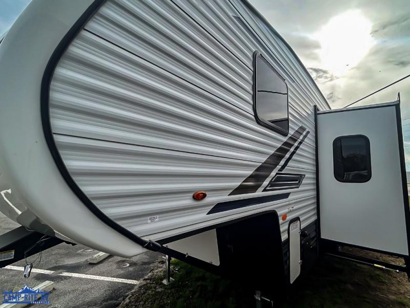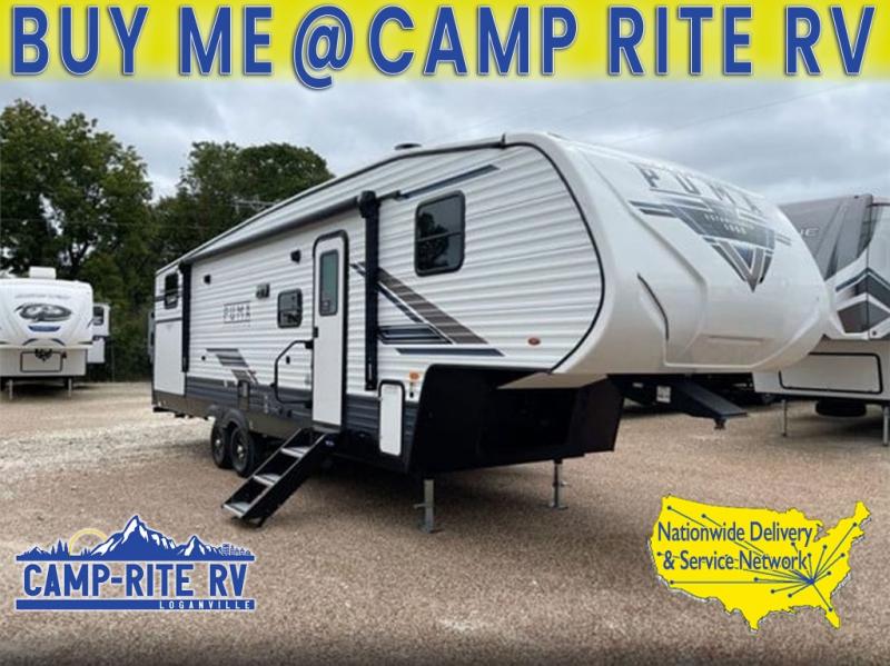 If you're looking for family-fun adventure then you need one of these Palomino Puma fifth wheels or travel trailers! They are built rugged, easy to tow, and jam packed with features. The Darco wrapped underbelly will protect your units vitals through every season and the AlphaPly roofing membrane covers it. They also have super lube axles and a powder coated frame. Their luxurious interiors feature a spice rack and built-in knife rack in the kitchen, USB charging ports to keep your electronics at 100%, and high density foam mattresses for a good night's rest. The required Advantage package comes with night roller shades for privacy at night, two outside speakers to crank up the tunes while you play cornhole, and an outside shower to keep the dirt outside where it belongs, plus so much more!