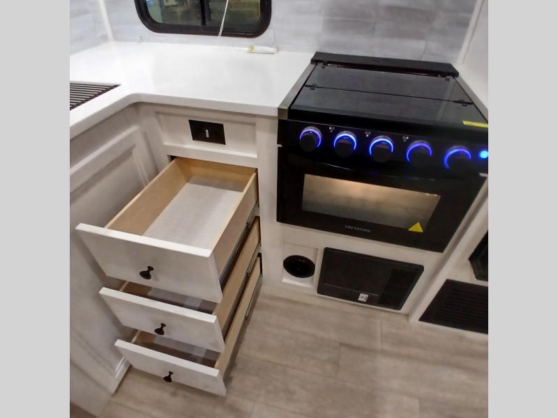Each SolAire travel trailer or hybrid expandable features a white hi-gloss exterior and Dexter Tor-Flex torsion axles for smooth towing. You will love having a power tongue jack for easy set up, plus slam latch baggage doors with magnets to make unloading easier than ever. There is also a tire pressure monitoring system, a power awning with LED lights, and aluminum wheels included on the exterior. Head inside to find solid surface countertops, roller shades, a Furrion HDMI DVD/Bluetooth/HDMI stereo, and USB ports to keep your electronics charged.