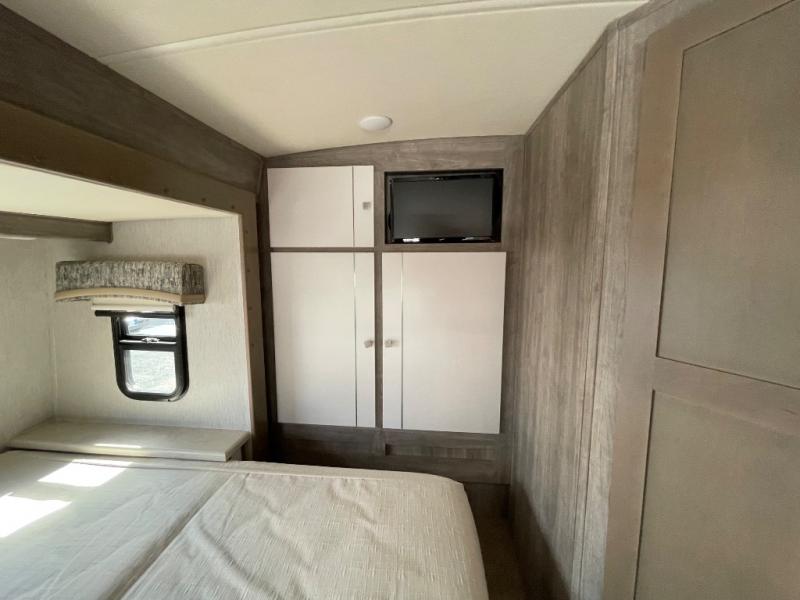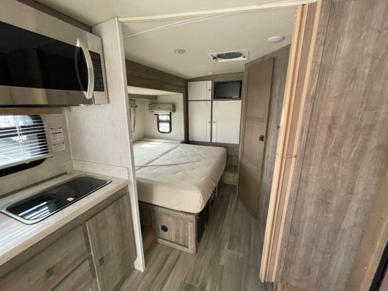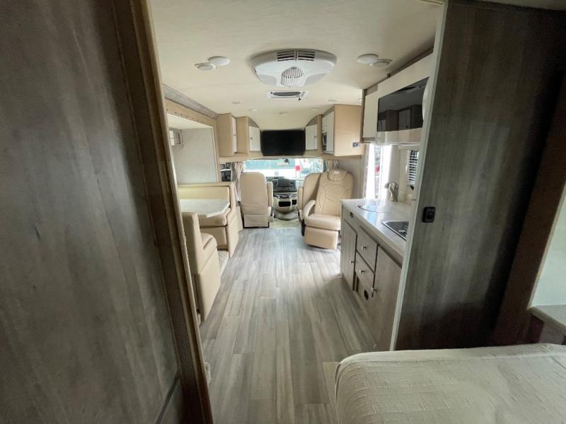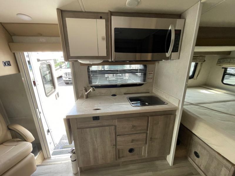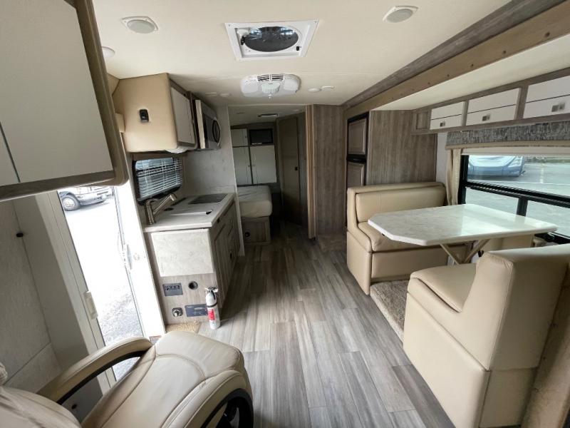 Imagine driving down the road in this Phoenix Cruiser Class B+ gas motorhome while riding on a memory foam cab seat while your passenger does as well. You might like to stop along the way to take pictures of the views and shop in new towns. Once you have chosen your destination, you can easily set up this two-slide motorhome to enjoy a weekend or longer trip. You will have a full kitchen if you like to cook, a dry bathroom to stay clean and refreshed, and sleeping space for four people. The RV queen bed slide opens up the rear bedroom, and the main living area slide allows you to move freely from the front cab area to the rear bathroom.