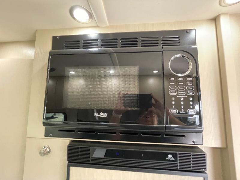 This Plateau Class B diesel motorhome features two dining locations for you to enjoy your delicious meals at thanks to the innovative Lagun table. There is also an array of storage options between the overhead cabinets, the soft-close drawers, and the pull-out pantry. If you have to get a little bit of work done while on the road, then you will love the front lounge workstation with a 120V power outlet, USB charging ports, and an extended Corian countertop with a privacy shade and storage cabinets too. The microwave makes it easy for you to pop a bag of popcorn and enjoy eating it while you relax on the power sofa with memory foam sofa cushions!