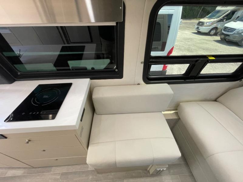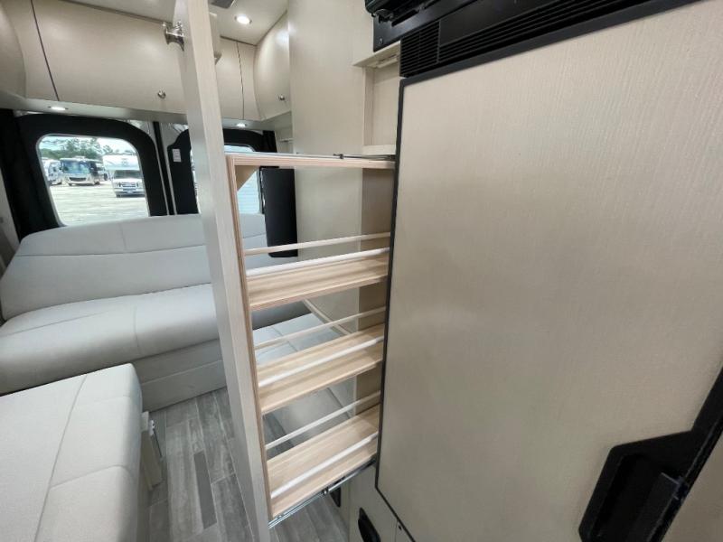 These Pleasure-Way Plateau Class B diesel motorhomes have been designed with comfort and convenience to accommodate a wide range of lifestyles! They are powered by a Mercedes Benz Sprinter 3500 van chassis with high-performing, fast-charging, and maintenance-free Eco-Ion Earth Smart dual 300Ah lithium batteries. The dual 10 inch touchscreen control panels allows you to adjust the climate, manage battery usage, monitor the solar panel charge volts, and set, start, or stop the automatic generator. Another feature is the Truma AquaGo Comfort Plus water heater that features a 60,000 BTU stepless burner, a recirculating water line, and a mixing vessel to deliver hot water on demand without temperature spikes. Come see what all the fuss is about today!