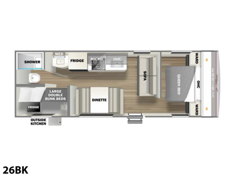 Prime Time Avenger travel trailer 26BK highlights: