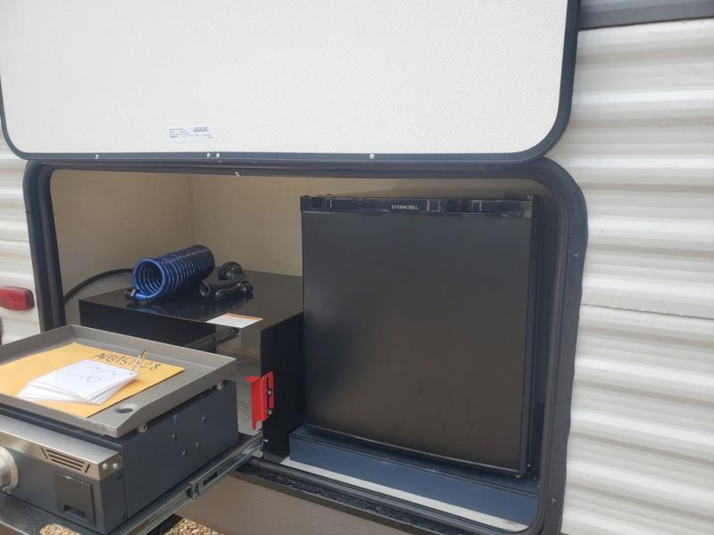 This Prime Time RV Avenger travel trailer provides several convenient and "must have" features that will check all the boxes! The high-rise faucet in the deep basin sink lets you easily wash the dishes that were used to make dinner in the large 17" oven, and the entertainment center gives you a chance to relax and unwind after all of that work. Once you are ready to turn in for the night, the walk-around queen bed in the front bedroom will deliver comfort while you sleep and the space savings sliding doors offer privacy, plus the U-shaped dinette and sofa within the slide in the main area will give you a place to dine, play games and provide sleeping accommodations for overnight guests. Yet the main reason you might have wanted this trailer, the spacious rear bathroom with linen storage and/or the outside kitchen and 16' power awning.