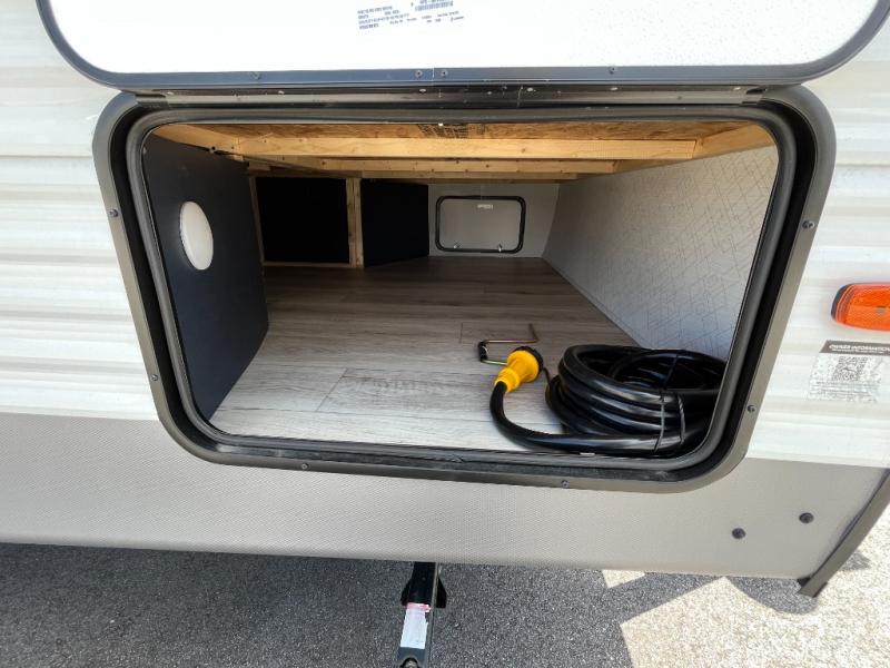 With any Avenger travel trailer by Prime Time, the exterior includes an aerodynamic smooth front metal, a diamond plate front rock guard for protection on the road, and four stabilizer jacks to keep your unit secure. There is a fully walkable roof plus an enclosed and heated underbelly that will help extend your camping season. The interior offers a 15,000 BTU air conditioner for the perfect climate inside, in-floor ducted heat, a systems monitor panel, and a Winegard 360+ antenna with Wi-Fi prep that will give you the option to stay connected as you camp. Each model also includes seamless Carefree Congoleum flooring, kitchen backsplash, shower pans in all models, and pleated nightshades throughout to name a few interior comforts!