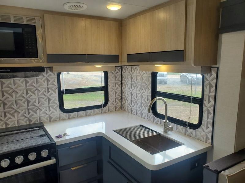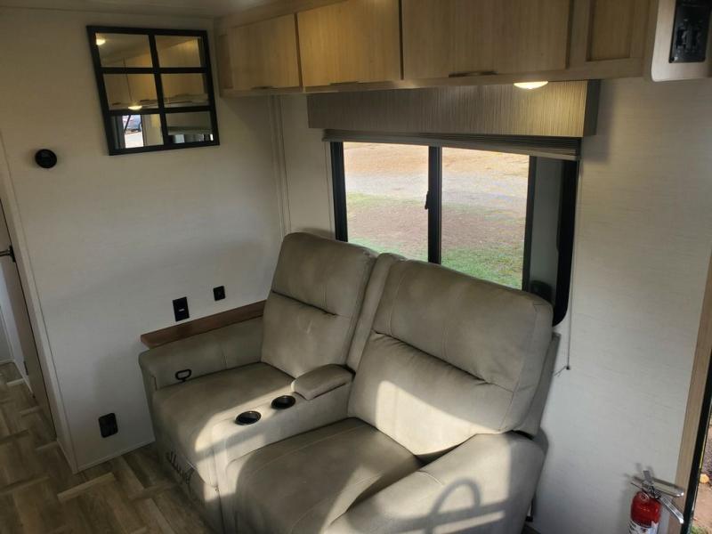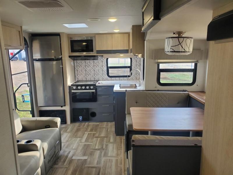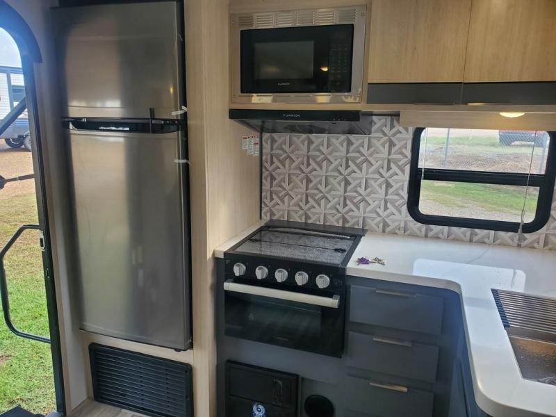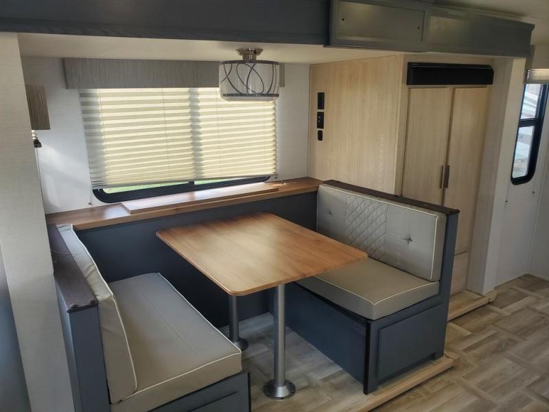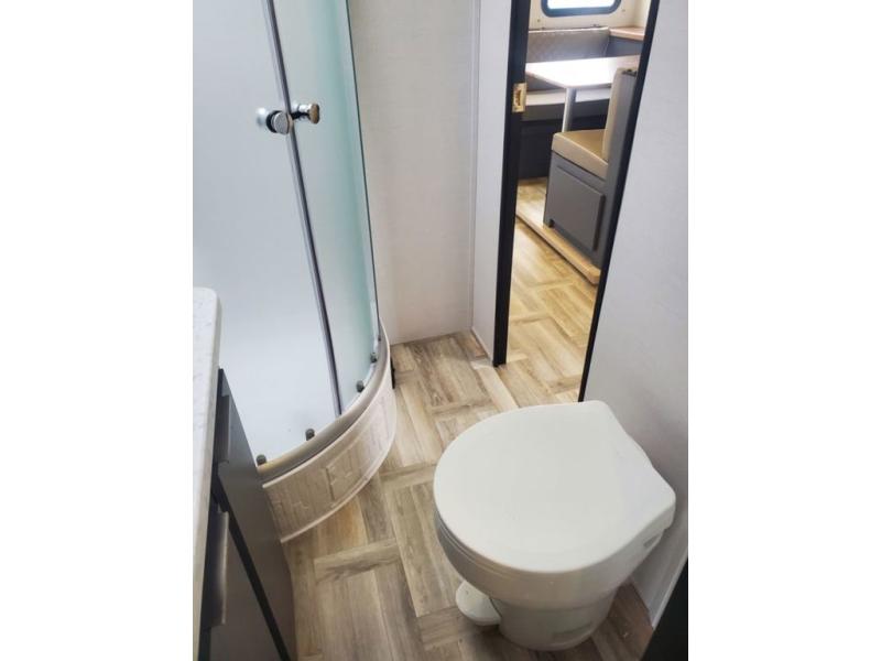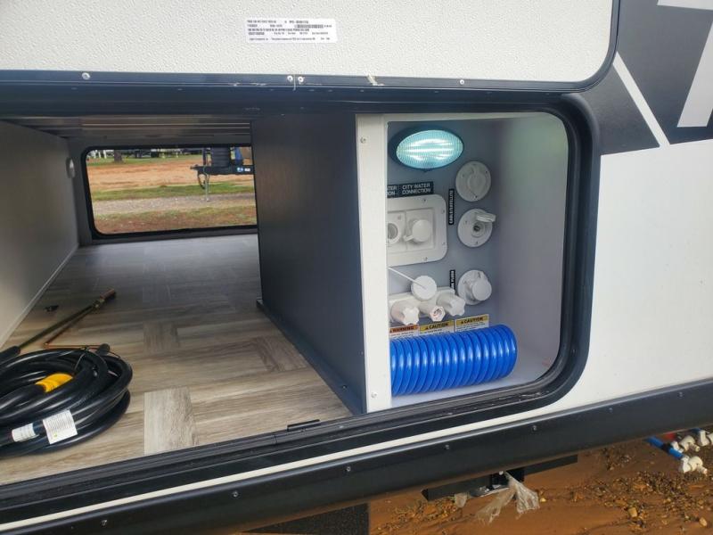 With any Tracer travel trailer by Prime Time RV, you will enjoy a lightweight, easy to tow RV for all your outdoor adventures. Each one is constructed with Eternabond construction that includes laminated aluminum framed walls, floor, and roof for ultra durability. You will be able to extend your camping season thanks to the fully enclosed underbelly, the 30K BTU furnace, and the 15,000 BTU A/C. The Tracer travel trailers are packed with exterior conveniences to make each trip hassle-free, like the power tongue jack and electric stabilizer jacks, the Doggy D-ring pet securement, the universal docking center, and so much more. Head inside to find at-home comforts throughout, including solid wood core cabinetry, LED lighting with motion sensor lights in key locations, and a brushed nickel "J" spout kitchen faucet to name a few.