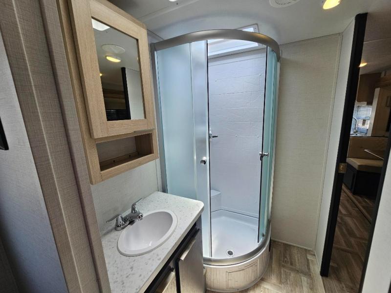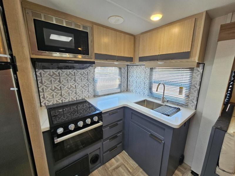 With any Tracer travel trailer by Prime Time RV, you will enjoy a lightweight, easy to tow RV for all your outdoor adventures. Each one is constructed with Eternabond construction that includes laminated aluminum framed walls, floor, and roof for ultra durability. You will be able to extend your camping season thanks to the fully enclosed underbelly, the 30K BTU furnace, and the 15,000 BTU A/C. The Tracer travel trailers are packed with exterior conveniences to make each trip hassle-free, like the power tongue jack and electric stabilizer jacks, the Doggy D-ring pet securement, the universal docking center, and so much more. Head inside to find at-home comforts throughout, including solid wood core cabinetry, LED lighting with motion sensor lights in key locations, and a brushed nickel "J" spout kitchen faucet to name a few.