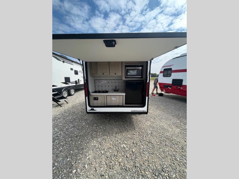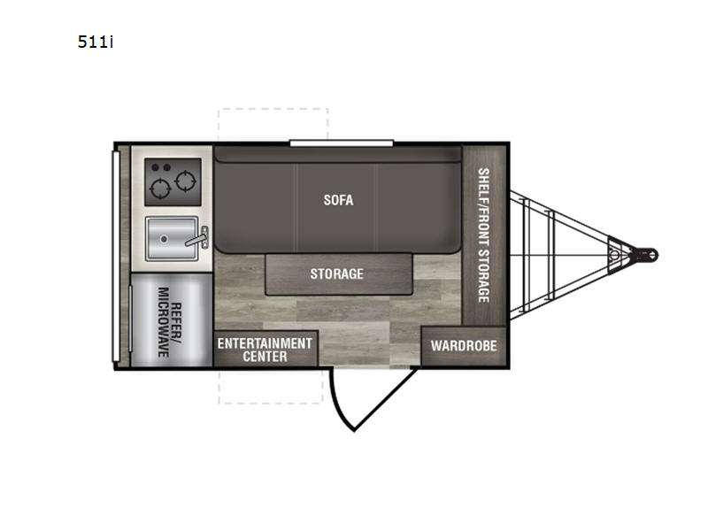 This model is perfect for first time RVers or seasoned campers alike. You won't have to sleep on the hard ground since this model includes a sofa, and your clothes can be stored in the wardrobe. There is also a shelf/front storage for additional belongings. The outside kitchen includes a two burner cooktop, a refrigerator, plus a microwave for quick meals. Get started today on your next big adventure in this lightweight travel trailer!