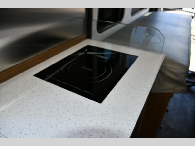 - Two-burner recessed propane stove with flush cover and built-in igniter.
