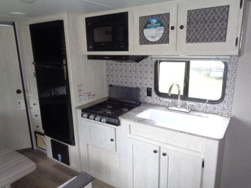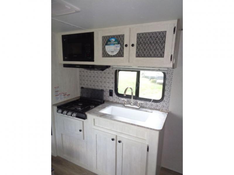 In any Shasta i-5 Edition travel trailer, you will find quality craftsmanship along with an affordable price tag. These units each features four stabilizer jacks to make setting up easier and a tire pressure monitoring system for added convenience. The Base Camp Package provides each unit with black tank flush, a monitor panel for quick access to the functions of your unit, a 13.5K A/C unit, a 20 lb. LP bottle, and solar and backup camera prep, plus more. You will appreciate the seamless countertops, a residential 10 cu. ft. 12V residential-style refrigerator and microwave oven for food storage and cooking, plus pass-through storage and patio awning for your outdoor enjoyment!
