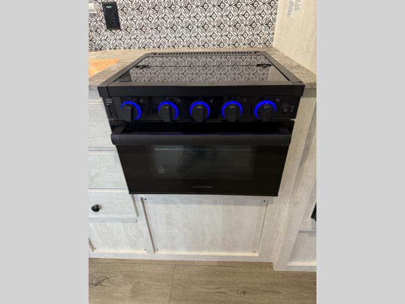 Whether you camp locally or far away, you will be able to enjoy a spacious interior and privacy in this trailer! From the rear full bathroom with an upper storage cabinet and linen storage to the front bedroom with a door to close when you are ready for bed, privacy is no issue. The walk-around RV queen bed offers dual wardrobes and an overhead cabinet to keep your things organized. The combined living and kitchen provides more floor space thanks to the U-shaped dinette, and the sofa provides more seating. The cook will love the galley kitchen with everything nearby including a pantry. Yet the outside kitchen will give them choices when making meals.