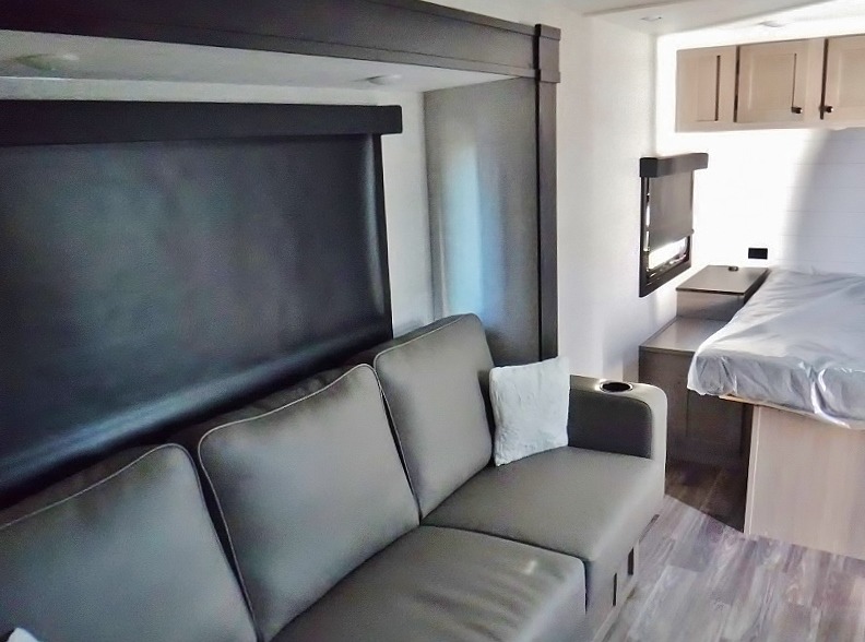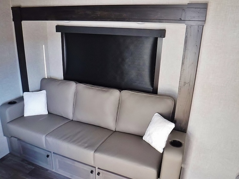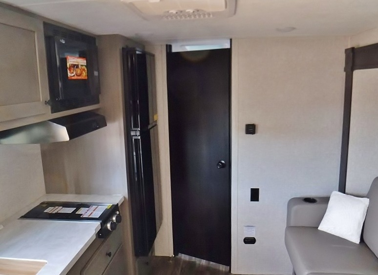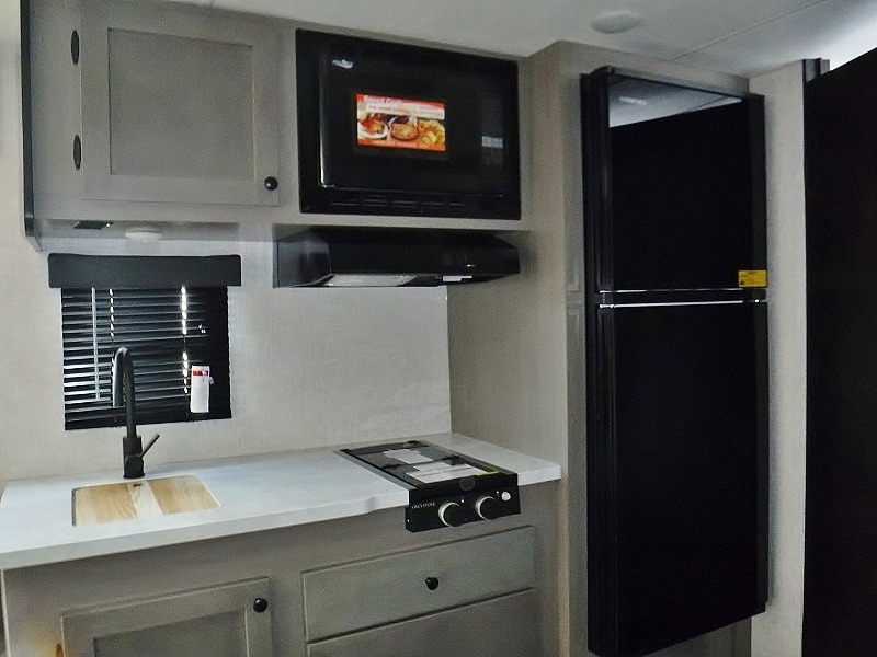 Anytime you take this Super Lite Maxx travel trailer out to the campsite, you'll feel good about the decision! This trailer makes life easy with its skylight and tub/shower in the full rear bathroom, its two-burner recessed range and convection microwave in the kitchen, and its jack-knife sofa and 80" bed for sleeping. Another great aspect of this trailer is its storage space. There is a bathroom linen closet, overhead cabinets, and exterior storage compartments. This model also includes a 14' power awning and a grill hookup with LP quick connect if you want to bring along your grill.