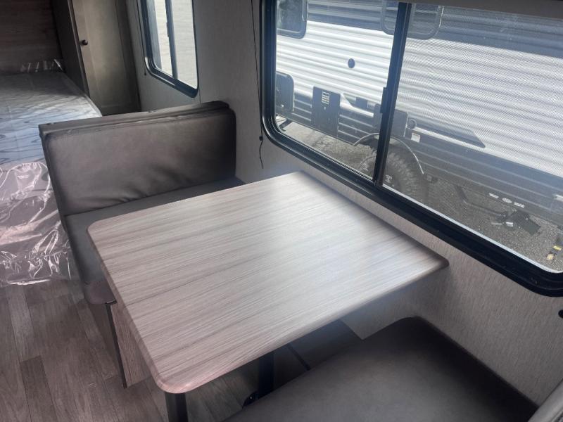 Pack your bags and load up this travel trailer for a great camping trip! You will have everything you need to keep your belly full with the two burner cooktop, your hair clean with a tub inside rear corner bathroom which also has a power vent fan, and your body well rested after sleeping on the front bed. You can even play card games at the booth dinette or transform it into an extra sleeping space. There is also an outside shower to rinse the mud off your feet before entering inside! A sport package option is available with this model, please see dealer for details.