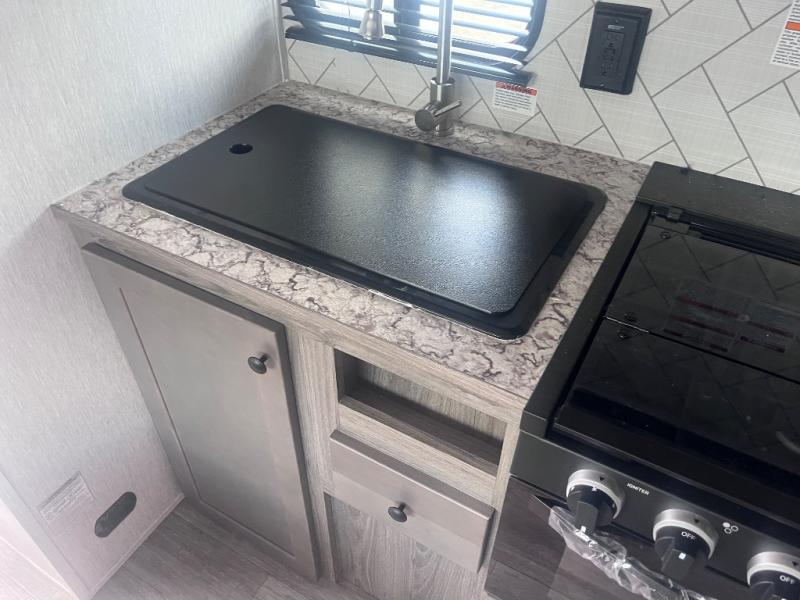 You can trust the build and enjoy your experience with any one of these Sunset Park RV Sun Lite travel trailers! Their aerodynamic profile is not only easy to haul, but also saves on fuel. They are built to withstand years of traveling even though they are lightweight with a diamond plate rock guard, a one piece PVC roof membrane, Dexter Spring-Leaf axles, and tinted safety glass windows. Some comfort standards you are sure to enjoy are the two-burner stove top range with hood, light and fan, plus the refrigerator and microwave, and an outside shower to help keep the dirt outdoors where it belongs.