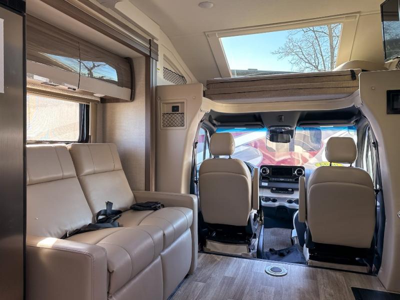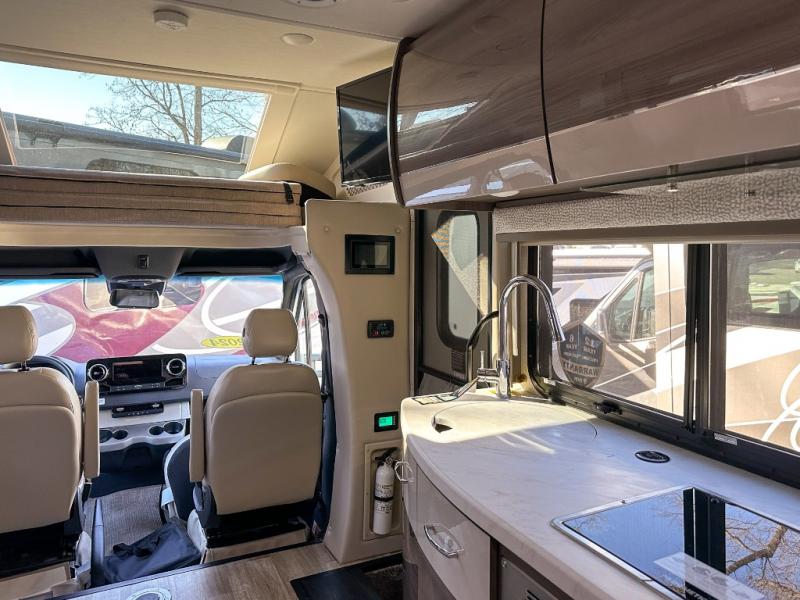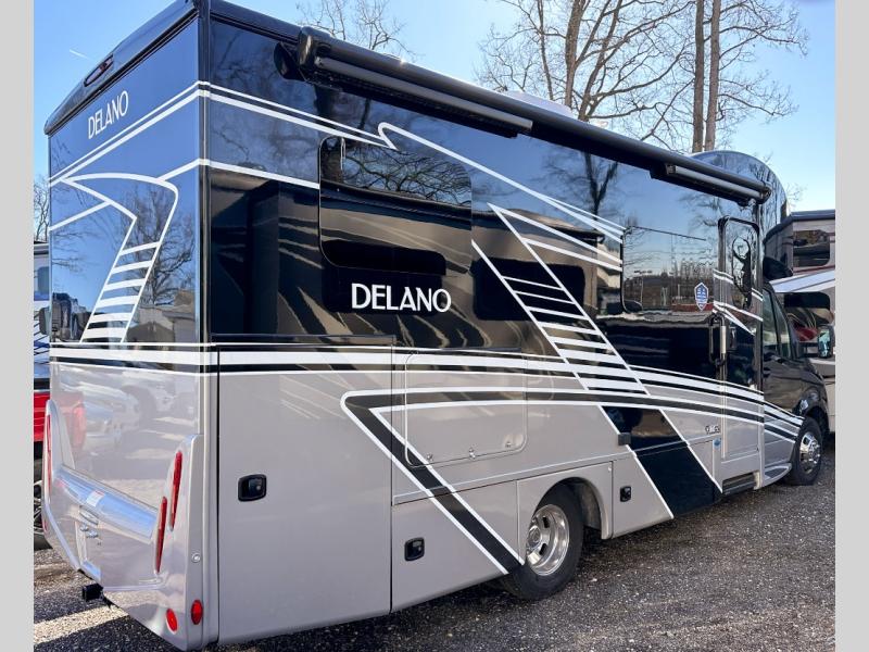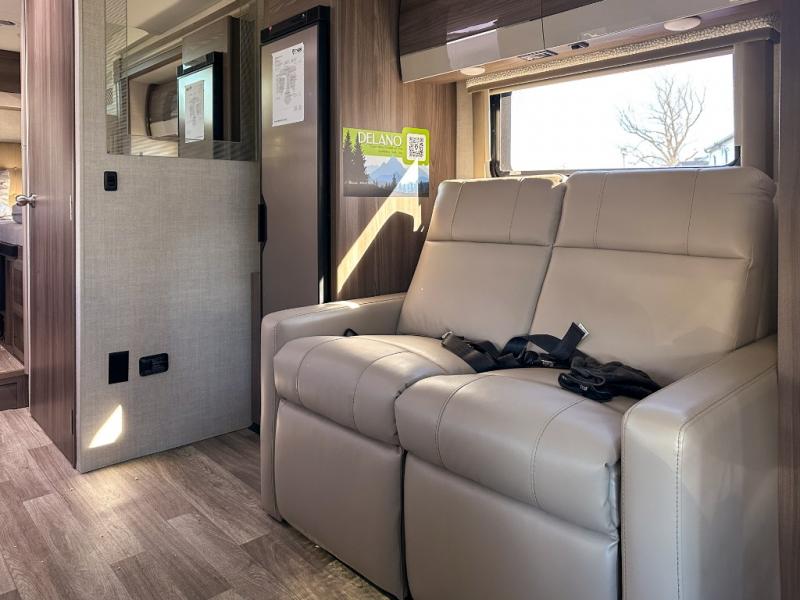Luxury comes standard in the Delano Sprinter Class C diesel motorhomes by Thor Motor Coach. You will find it so easy to maneuver the road with the Mercedes-Benz Safety package that includes features such as active braking assist and distance regulator distronic plus that will help keep a safe distance from vehicles in front of you. The frameless windows and the full-body paint package with gel coated sidewalls is sure to be eye-catching, plus there is invisible front paint protection for added defense against the elements. Each model includes the Rapid Camp+ multiplex wiring control system that will make set-up easier than ever, a Winegard ConnecT 2.0 WiFi/4G/TV antenna to keep you connected to the outside world, and a whole coach water filtration system for fresh H2O day or night. The Delano Sprinter also includes many interior comforts, like the easy-to-clean residential vinyl flooring, the high-gloss Euro-style cabinetry, and the Leatherette furniture!