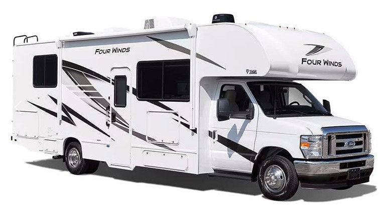 With any Four Winds Class C gas motorhome, you can travel in a trustworthy Ford E-Series chassis with 325HP, or a Chevrolet chassis with 401HP if you choose that option which is available on several models. Each is built with welded sidewall cage construction and a welded tubular aluminum roof, a one-piece fiberglass cap, and includes a slick fiberglass exterior with graphics package for style and years of enjoyment on the open road. Inside, you will enjoy the well-equipped kitchen, the spacious bathroom, the sleeping accommodations and the Winegard ConnecT 2.0 WiFi/4G/TV antenna that allows you to stay connected. With several floorplans to choose from and options to add, you will surely find one that fits your family's needs or your friend's approval. Choose today!