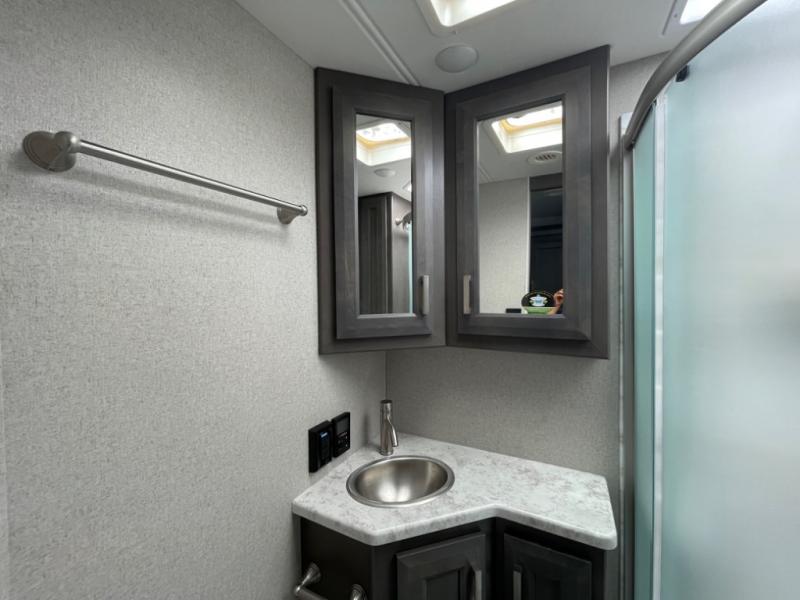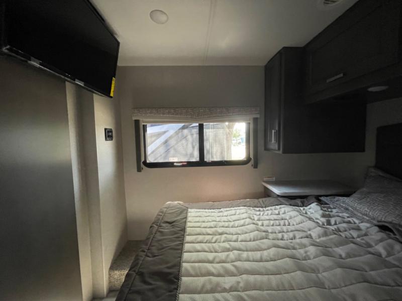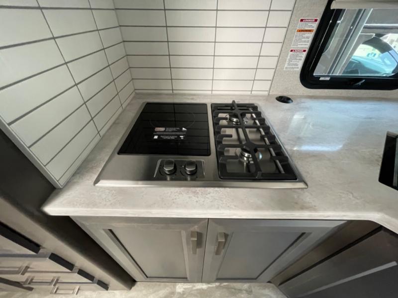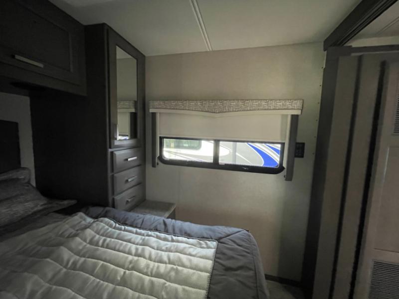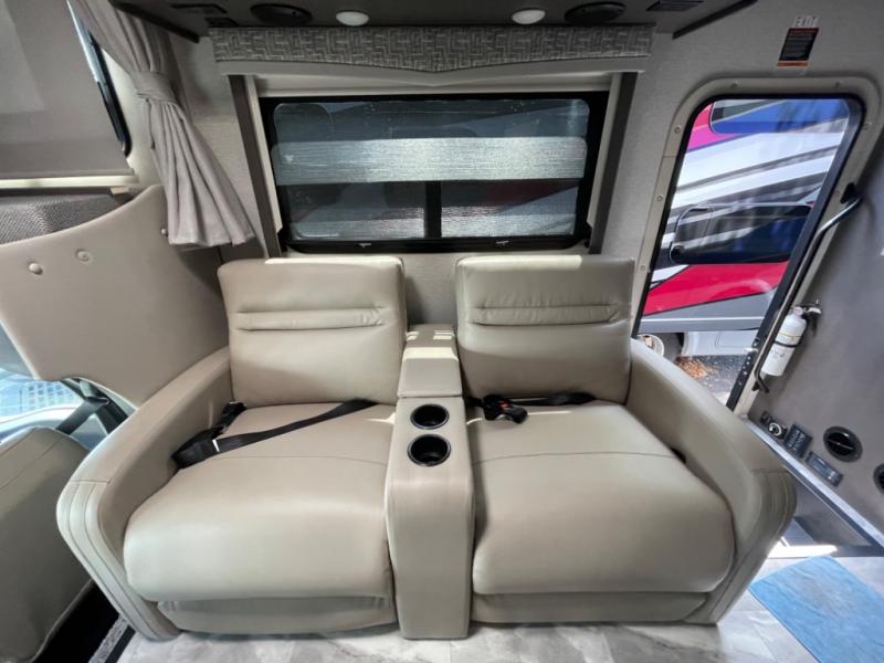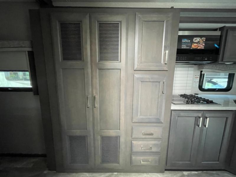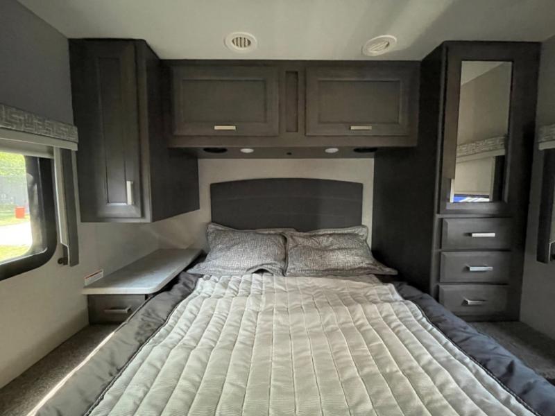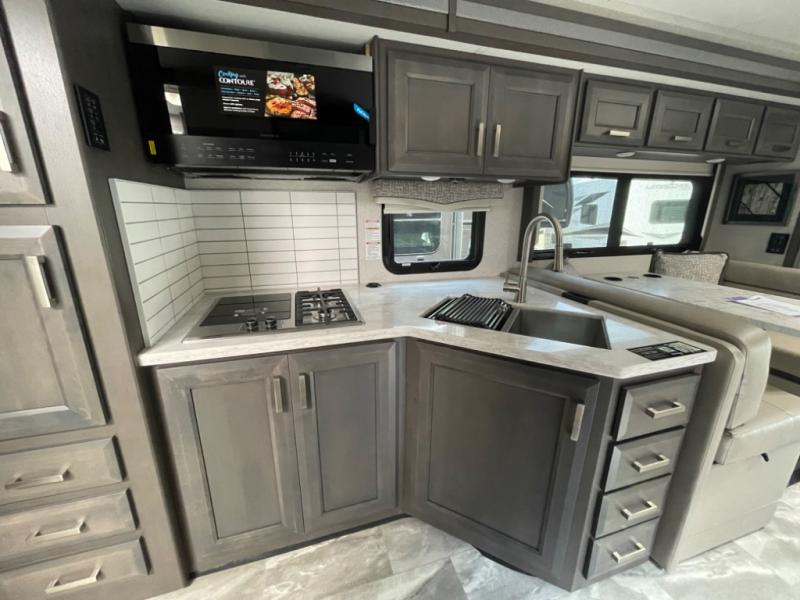 Full-time RVer's or weekend warriors will love this coach that can sleep four to five people each night. There is a large slide out in the main living area to provide your crew with plenty of space. The chef of your group can prepare dinner on the two burner gas range or in the convection microwave, and you'll appreciate having a large pantry to store non-perishables. After dinner is cleaned up, you can play games at the Dream Dinette, or relax on the theater seating that has a great view of the 39" TV in the cab-over bunk. If you're needing more sleeping space, just add the optional sofa in place of the theater seating. A full bath on board lets you clean up each day and the queen bed in the rear bedroom will provide a great night's rest!