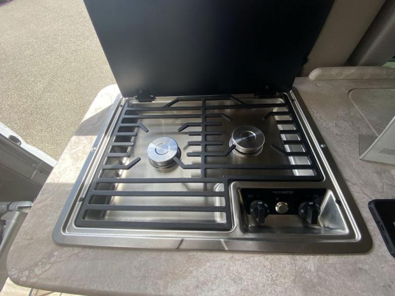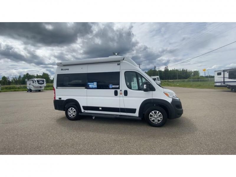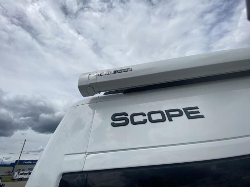 Make your travel dreams a reality when you step inside and get behind the wheel of this Scope Class B camper van. You can easily travel with your family and friends with seating for four including the driver and passenger seats which swivel, plus a bench seat behind the driver's side for two more and a dinette to dine at. Easily travel to tailgates or school events and have everything you need accessible, as well as for those overnight road trips where you can stop and relax at anytime, and stay for as long as you like. The two burner cooktop and microwave oven makes cooking easy, and the bathroom with a cassette toilet and sink is a convenience that you are sure to appreciate. You will find plenty of storage for your things with several overhead cabinets, pull-out drawers, as well as flip-open storage beneath the cushions in back where you can arrange them to create sleeping for two. With an optional pop-top roof you can create sleeping for two more.