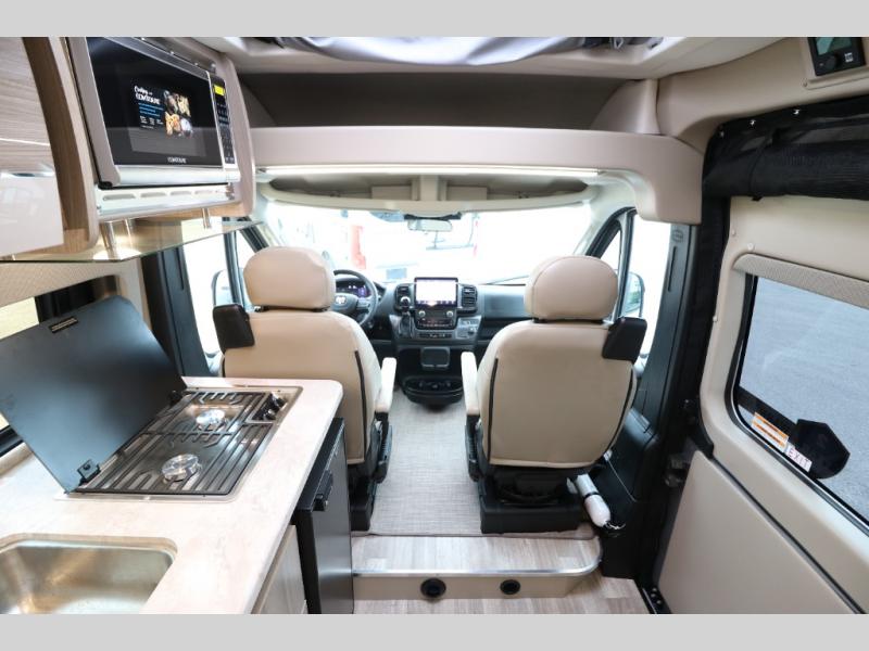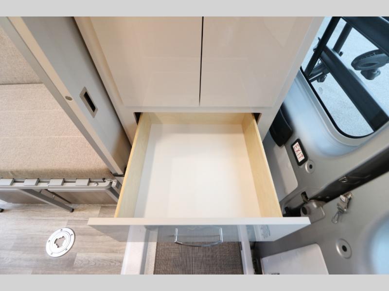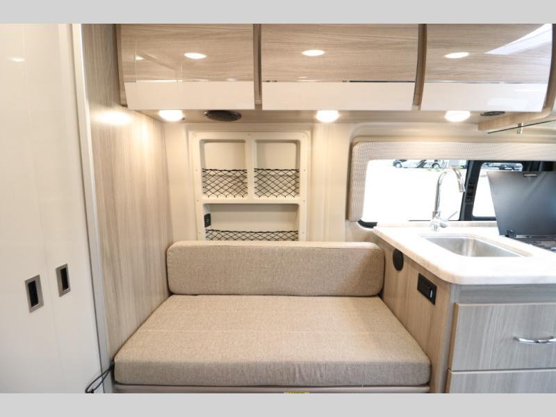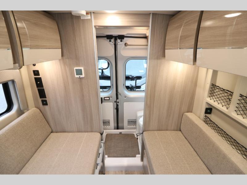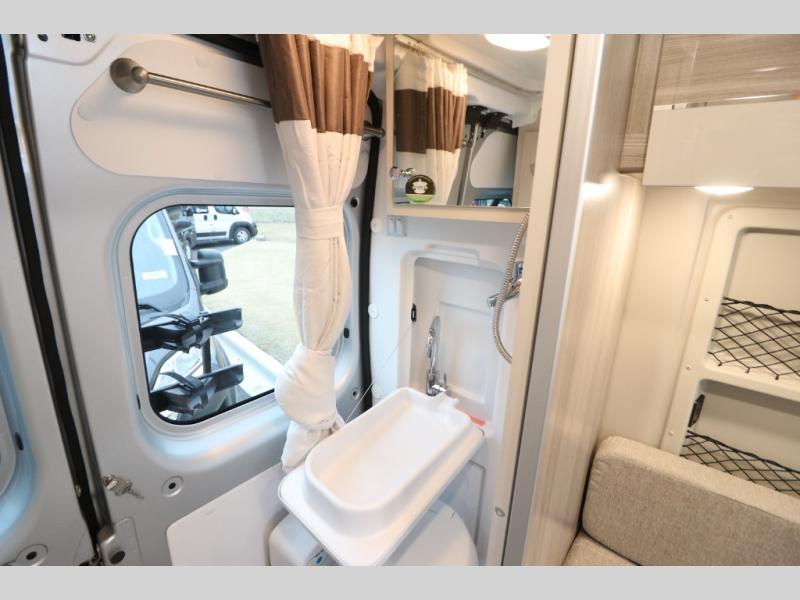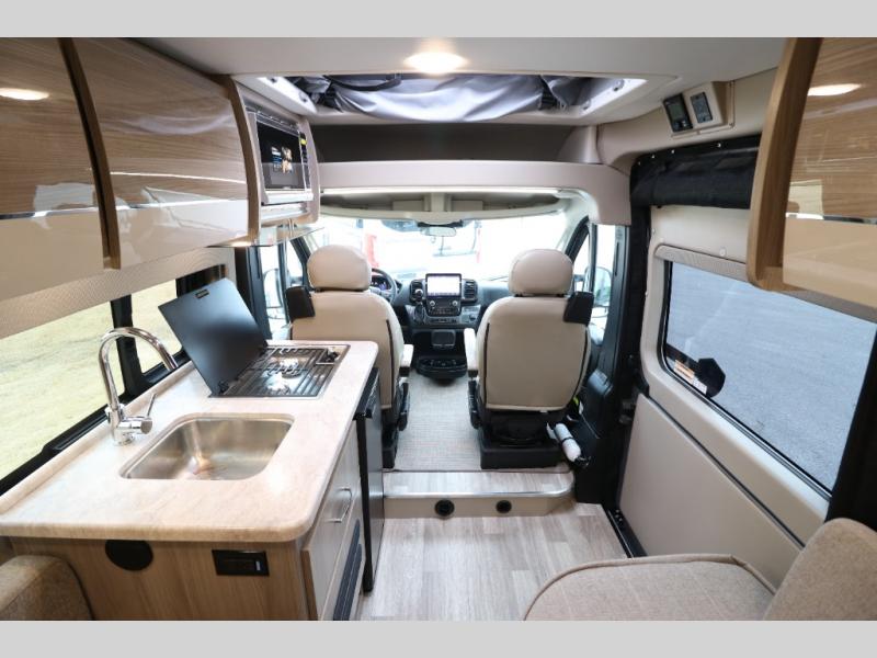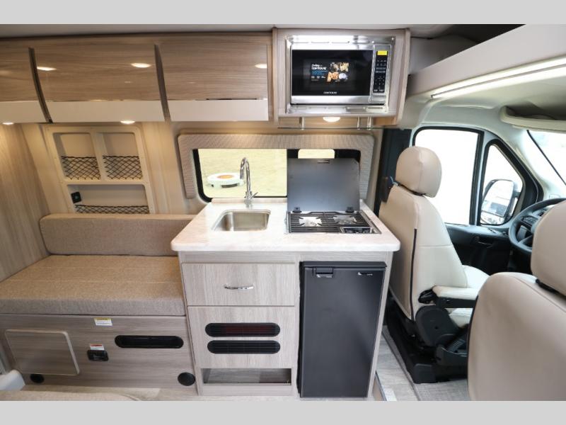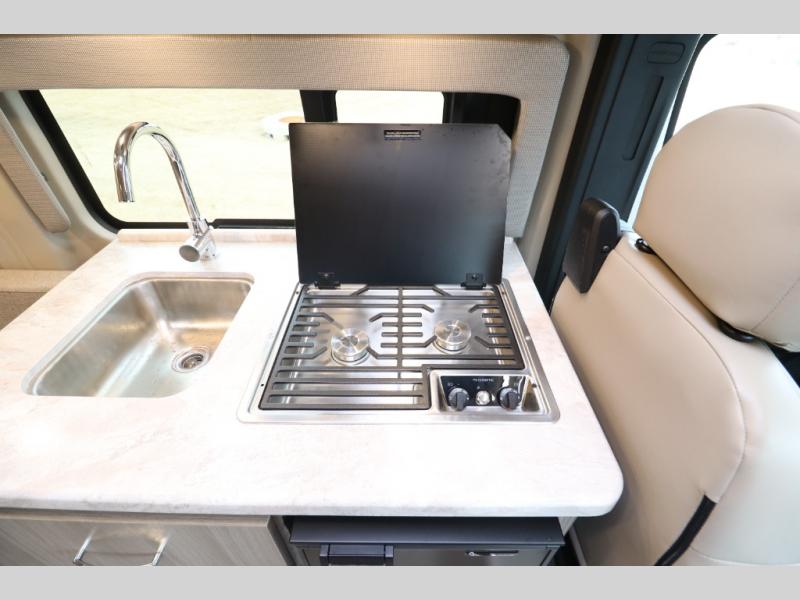 Get comfortable in this Scope Class B motorhome! The seating area includes an expanding sleeper sofa which converts to a roomy 44" x 70" bed. For additional guests, there's the option to add on the Sky Bunk™ with a retractable roof top. You'll have everything you need with the rear wet bath. The driving experience will delight you with swivel captain's chairs, touchscreen dash radio with Apple CarPlay™ & Android Auto™, keyless entry, and a telescoping steering wheel with audio buttons. You'll also appreciate the kitchen, which includes a two burner gas cooktop, microwave oven, and single door electric refrigerator. The stainless steel double bowl sink includes a cover and single handle faucet.