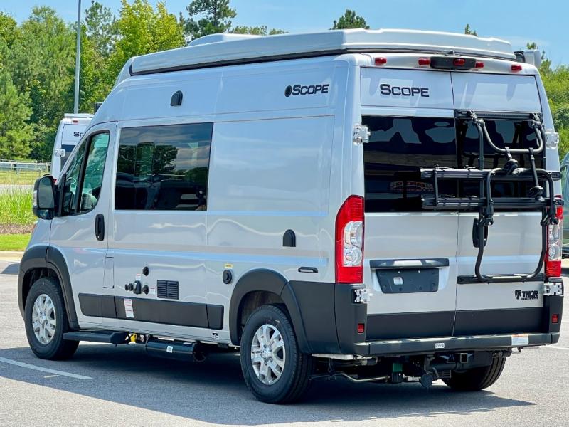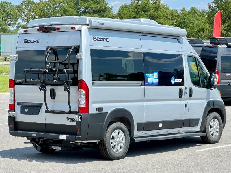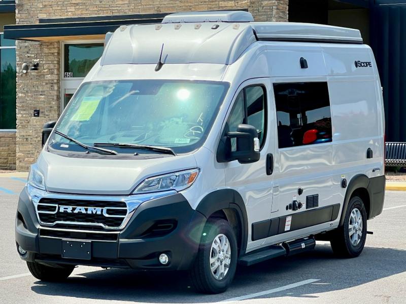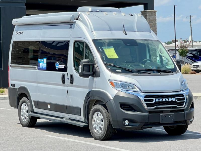 Each one of these Thor Motor Coach Scope Class B gas motorhomes are built for those who want to explore the great outdoors in comfort! They are front wheel drive and constructed with a RAM Promaster 1500 XT chassis, plus a 3,500 lb. trailer hitch with 4-pin connector so you can haul even more items with you. The side steps and large entryway make it easier to enter and exit the units, and the entryway screen door is an added bonus. The single door stainless electric refrigerator has a freezer for you to store your ice cream, and it is powered directly from the coach batteries which are charged by the quiet Onan® RV QG 2800 gas generator. Come find your perfect model and get out on the road today!