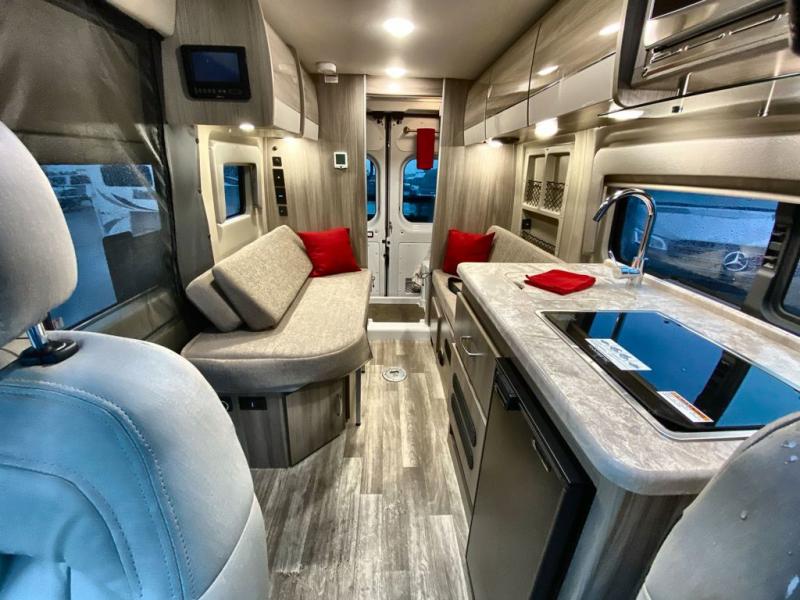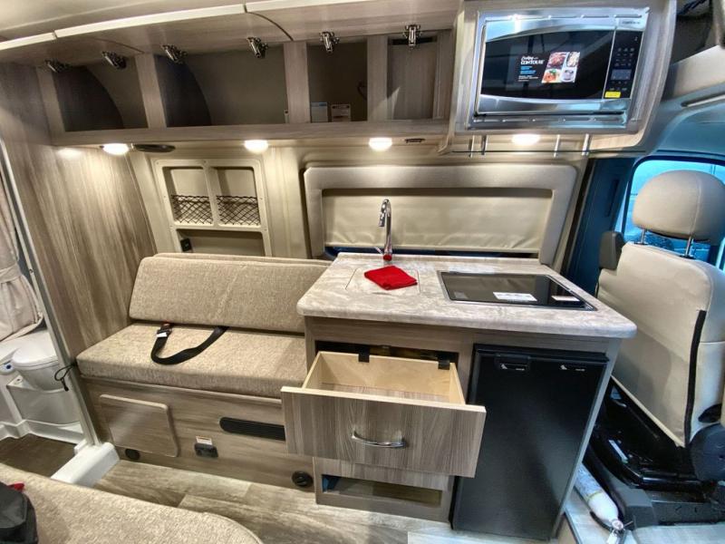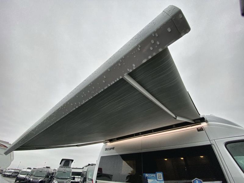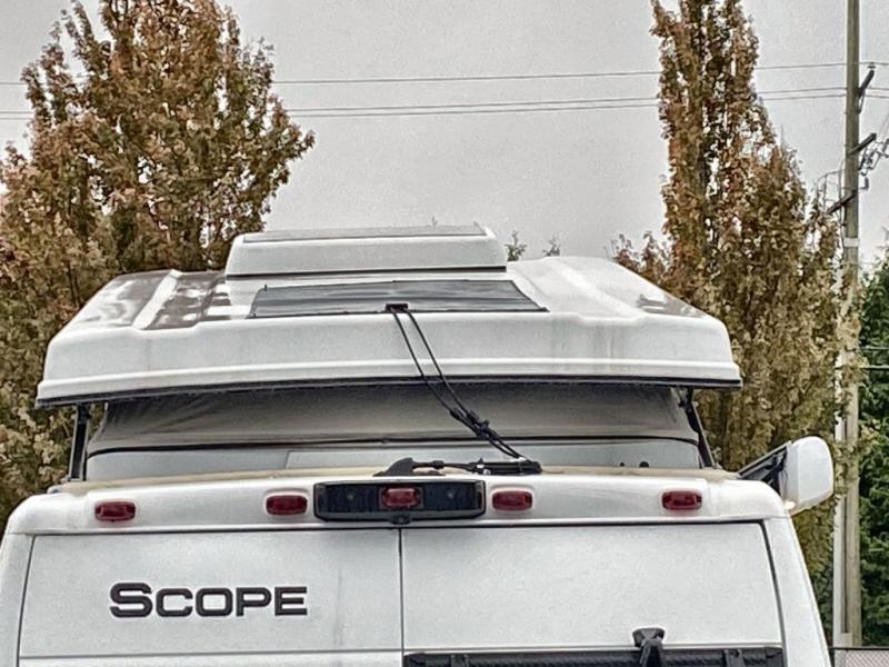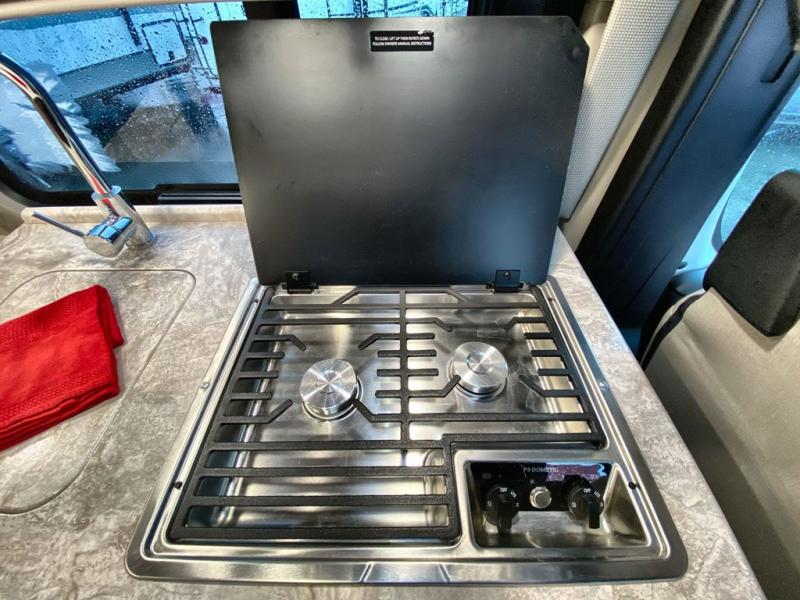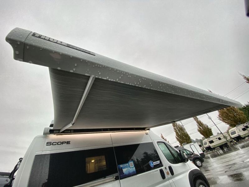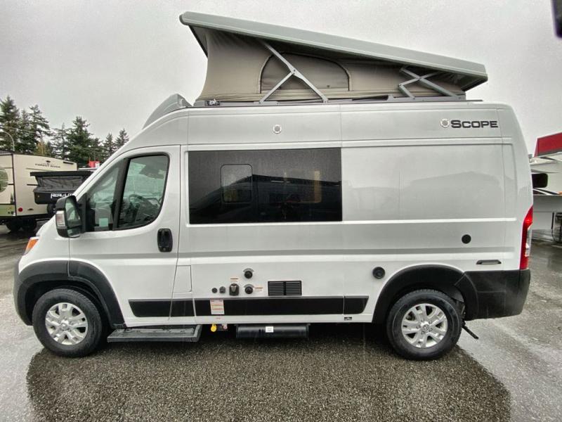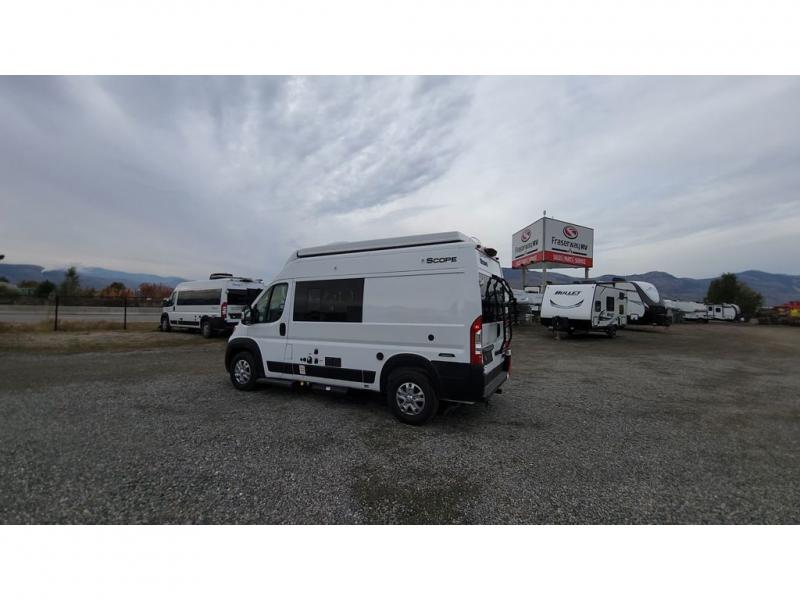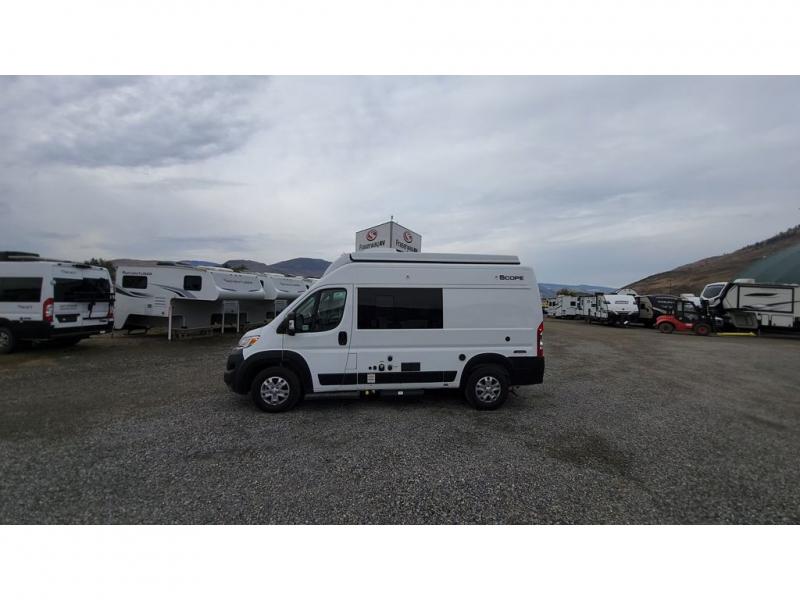 Get comfortable in this Scope Class B motorhome! The seating area includes an expanding sleeper sofa which converts to a roomy 44" x 70" bed. For additional guests, there's the option to add on the Sky Bunk™ with a retractable roof top. You'll have everything you need with the rear wet bath. The driving experience will delight you with swivel captain's chairs, touchscreen dash radio with Apple CarPlay™ & Android Auto™, keyless entry, and a telescoping steering wheel with audio buttons. You'll also appreciate the kitchen, which includes a two burner gas cooktop, microwave oven, and single door 12V electric refrigerator. The stainless steel double bowl sink includes a cover and single handle faucet for easy clean-up!