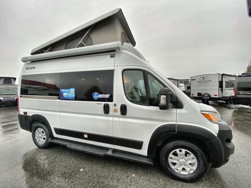 Each one of these Thor Motor Coach Scope Class B gas motorhomes are built for those who want to explore the great outdoors in comfort! They are front wheel drive and constructed with a RAM Promaster 1500 XT chassis, plus a 3,500 lb. trailer hitch with 4-pin connector so you can haul even more items with you. The side steps make it easier to enter and exit the units, and the entryway screen door is an added bonus. The single door 12V electric refrigerator is powered directly from the coach batteries which are charged by the quiet Onan® RV QG 2800 gas generator. You will also enjoy the residential vinyl flooring, premium window privacy roller shades, pressed countertops in the kitchen, and Euro-style upper cabinet doors for added comfort!
