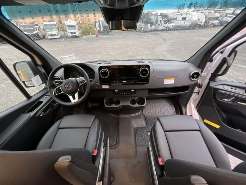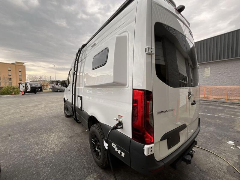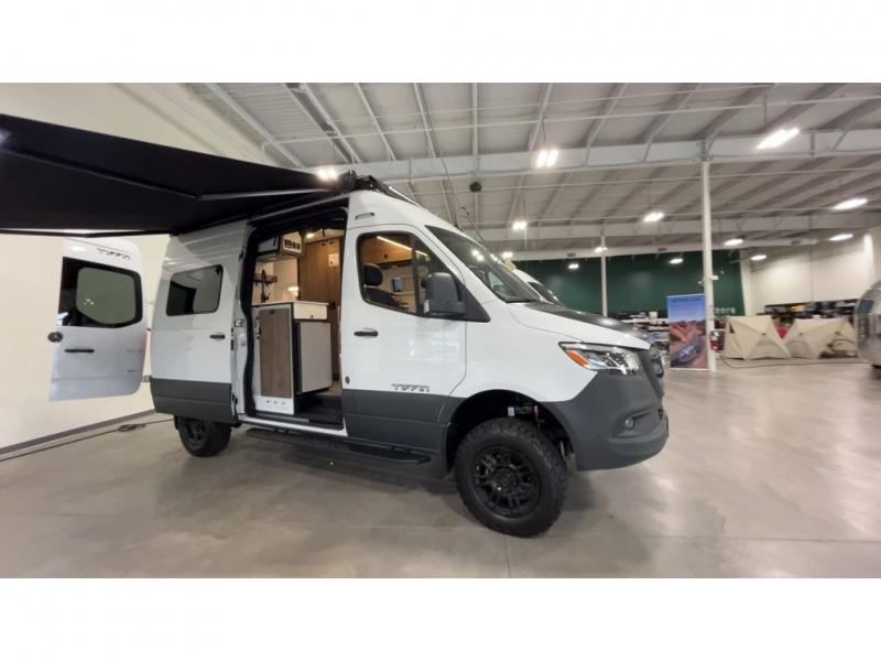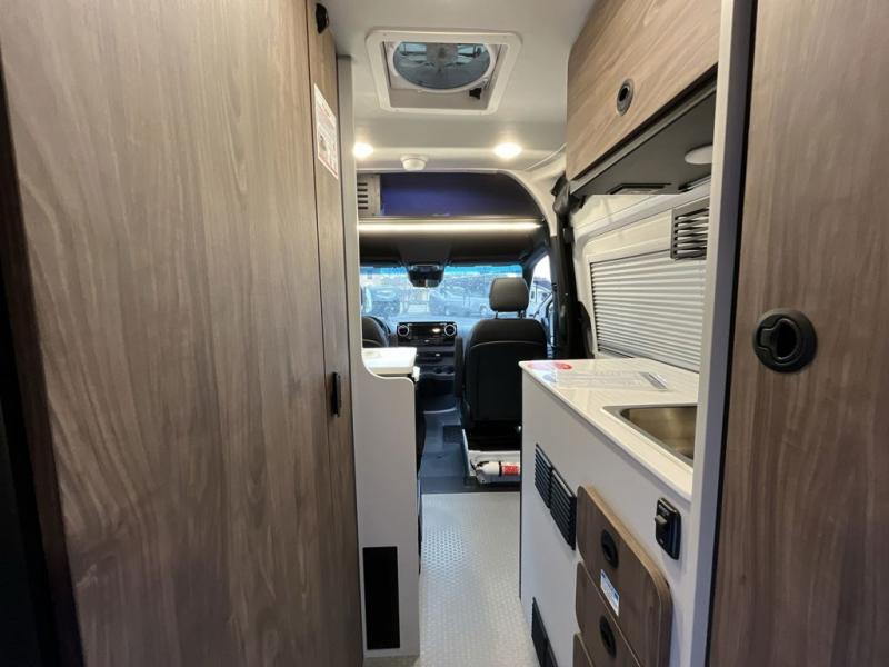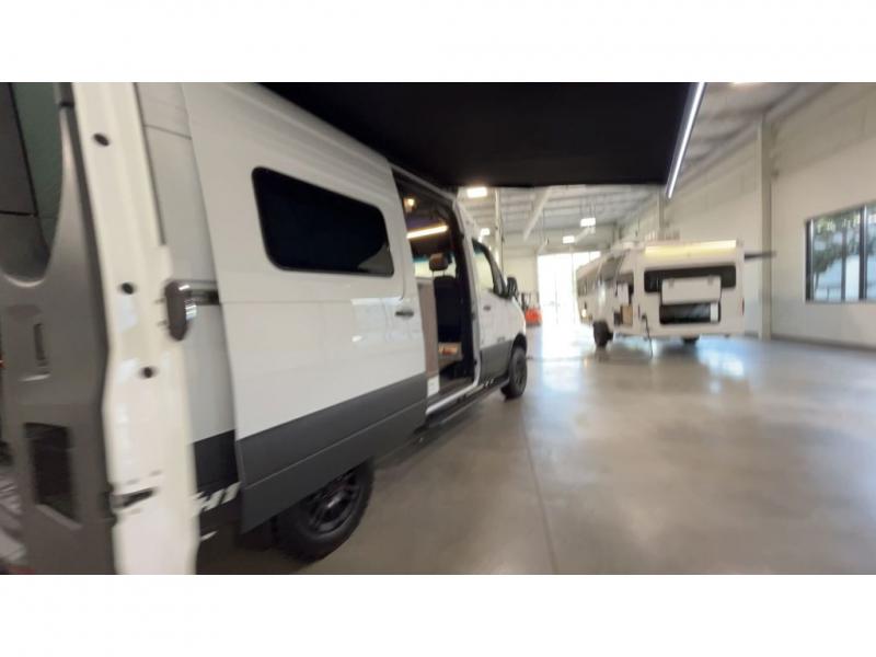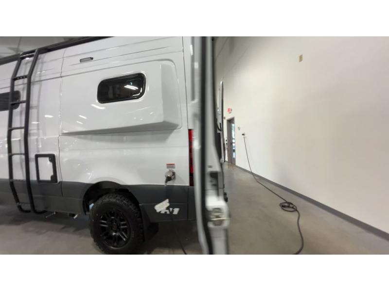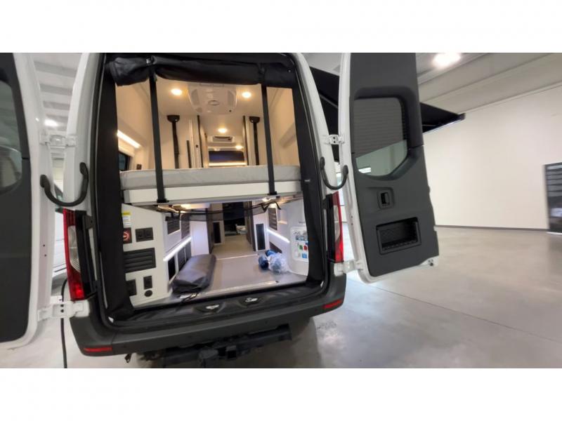 Pick a place, any place, and start packing. This off-road capable diesel van features a 49" x 79" gear garage beneath the power lift bed where you can store all of your gear. Camp chairs, paddle boards for the lake, outdoor games and plenty of hiking gear so you can go from one adventure to another and have everything you need at your fingertips. The on-board wetbath will keep you fresh and clean, and you can easily whip up meals and snacks on the road in the kitchen with a single-burner induction cooktop and refrigerator beneath the counter for your perishables. There is also a sink for cleaning up and a removable counter extension. A bench seat and removable wall mounted swivel table behind the driver's seat can accommodate you for meals or a game of cards. Both front driver and passenger seats swivel to the back so you'll have plenty of seating even with company. At night, the power lift bed will allow you to get a great night's rest so you can enjoy it all again the next day!