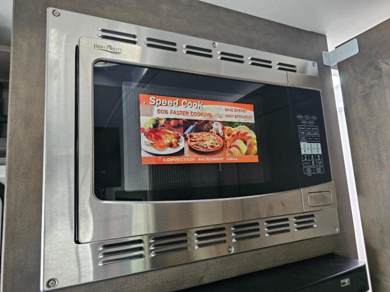 Stainless steel convection microwave makes quick meals and baking effortless.