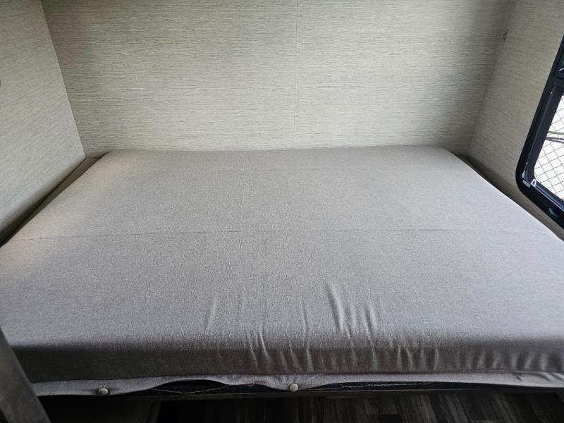 Flip-down bed system offers easy setup and a comfortable night’s rest.