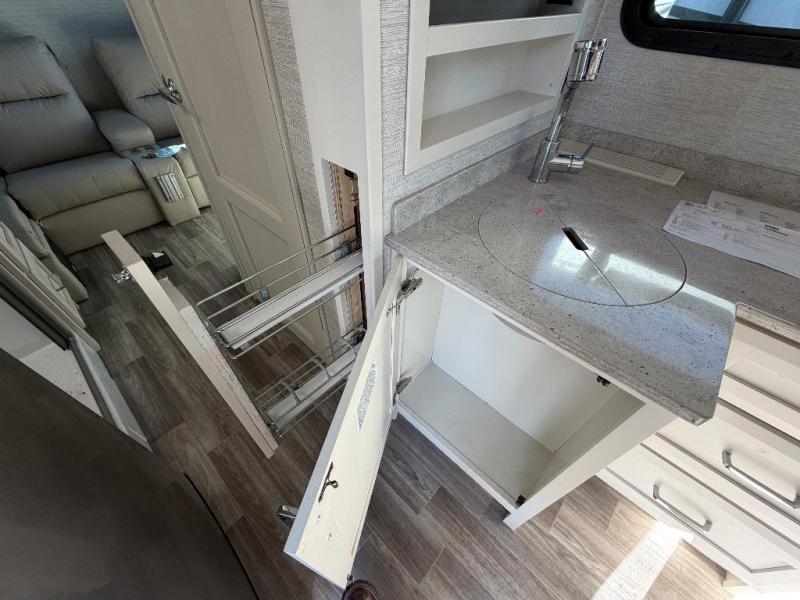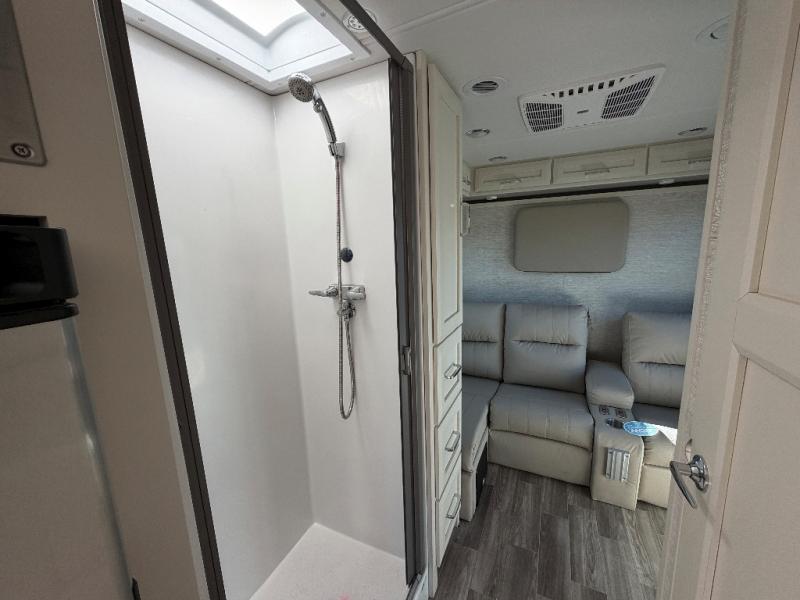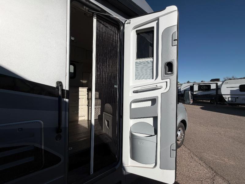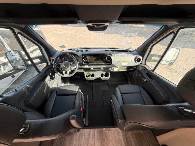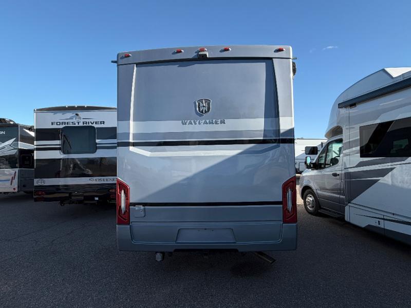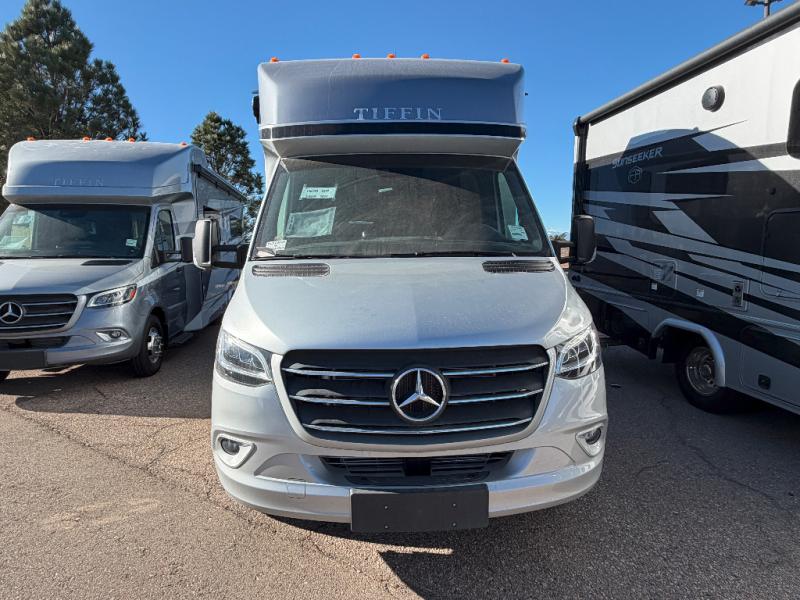 With any Wayfarer Class C diesel coach by Tiffin Motorhomes you will enjoy luxury features both inside and out. There is a new front and rear cap design with seamless gel-coated fiberglass plus full-body paint with two layers of clear coat for added protection. The Mercedes-Benz 3500XD dual wheel cutaway chassis provides a strong foundation, and the 3.0L V6 turbo 188 HP diesel engine will keep you going adventure after adventure! You will love the drive just as much as the destination with black leather adjustable captain's seats that are also heated, intelligent navigation, and a Mercedes-Benz MBUX multimedia system with a 10.25" touchscreen. Wherever you decide to roam, you will be met with interior comforts that include handcrafted overhead cabinetry, solar and privacy shades, solid surface galley countertops and task lighting, and a wardrobe in the bedroom to keep your space tidy. And don't overlook the exterior with motion-sensor lights in the cargo bay, a Girard side-mounted patio awning with integrated LED lighting and built-in speakers, lockable handles on the compartment doors, and so much more!