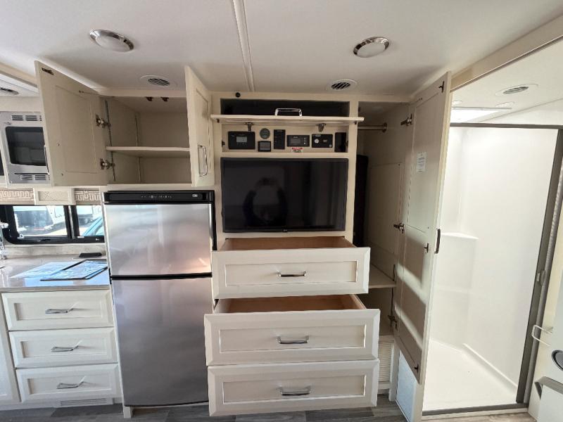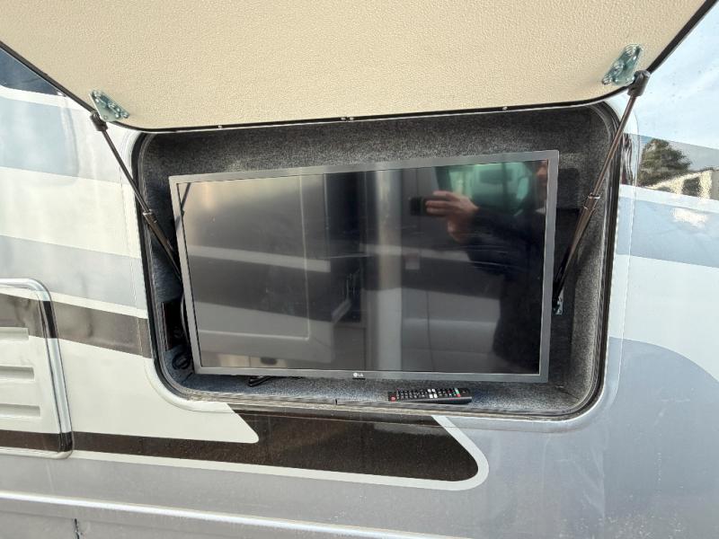Travel with your favorite person, your family, or a some friends to see nature along the highways, up close and where ever the road takes you! You will find sleeping space for five with the bunk over the cab, the booth dinette, and the versatile queen Murphy bed and sofa combo! You can watch the 32" TV while the cook makes dinner using the convection microwave or cooktop, and the gas/electric 7 cu. ft. refrigerator can hold the cold items. The rear full bathroom gives you privacy and the sliding door saves space. You might like to add a few options to customize your coach such as optional theater seating, or a tri-fold sofa in place of the dinette, a central vacuum system, an overhead entertainment center in place of the bunk, and/or an exterior TV to enjoy under the awning.