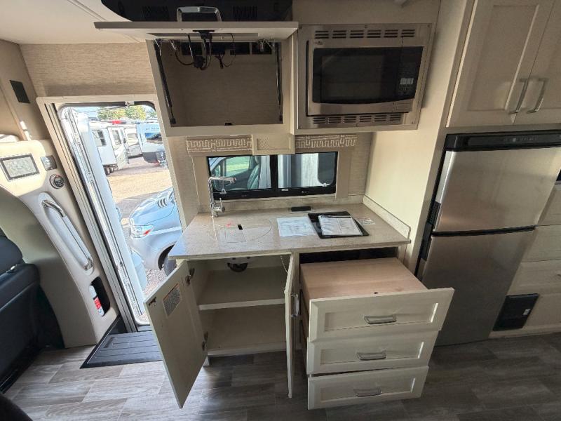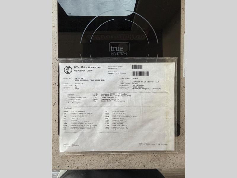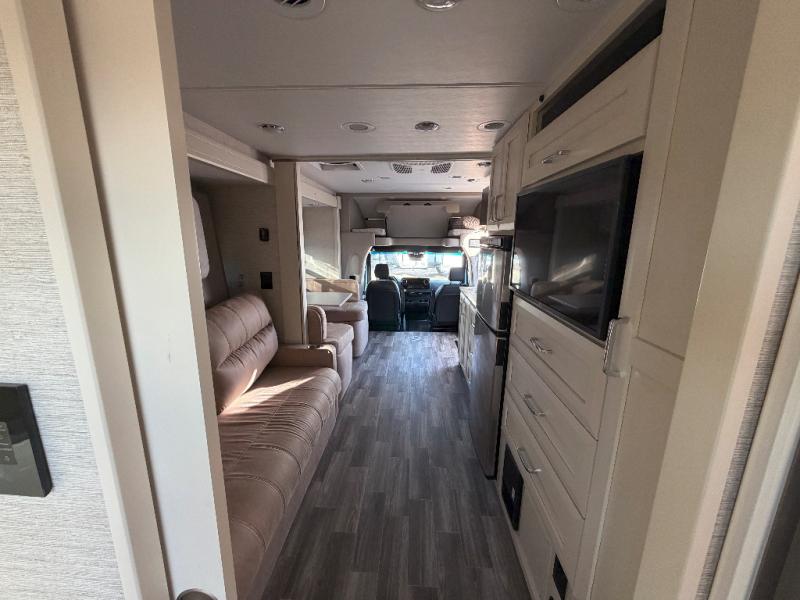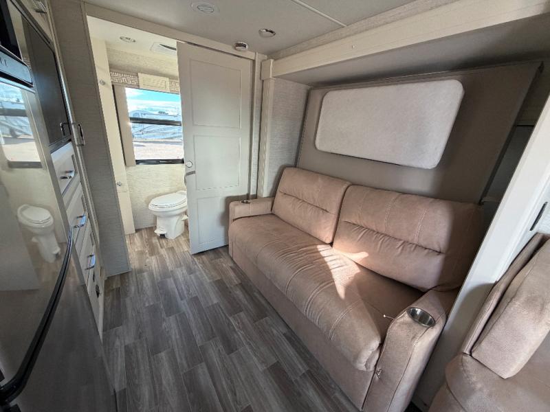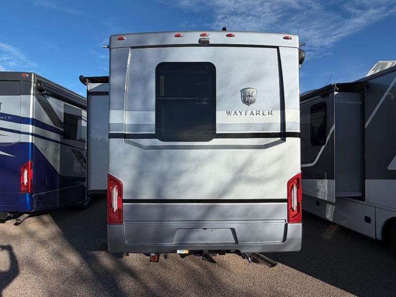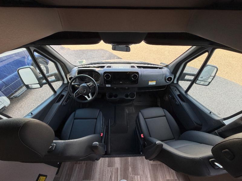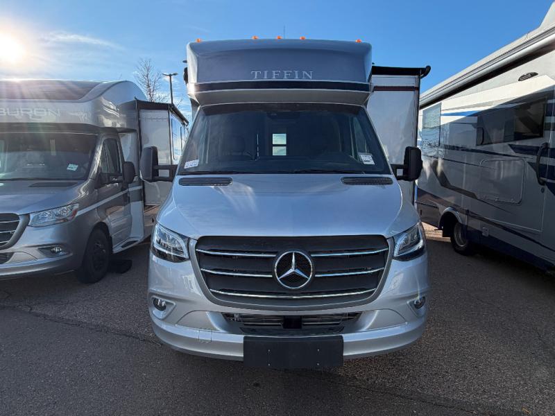 With any Wayfarer Class C diesel coach by Tiffin Motorhomes you will enjoy luxury features both inside and out. There are one-piece molded gel-coat fiberglass front and rear caps plus full-body paint and two layers of clear coat for added protection. The Mercedes-Benz 3500XD dual wheel cutaway chassis provides a strong foundation, and the 2.0L V4 turbo diesel high output 211 HP diesel engine with 332 lb-ft torque will keep you going adventure after adventure! You will love the drive just as much as the destination with black leather adjustable captain's seats that are also heated, intelligent navigation, and a Mercedes-Benz MBUX multimedia system with a 10.25" touchscreen. Wherever you decide to roam, you will be met with interior comforts that include handcrafted overhead cabinetry, solar and privacy shades, solid surface galley countertops and task lighting, and a wardrobe in the bedroom to keep your space tidy. New features include matte black cabinet hardware and bathroom accessories, a 9-speed shiftable automatic transmission, a standard 4,000 kW RVMP flex power LP generator, and more!
