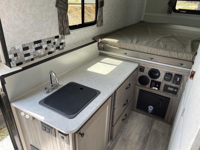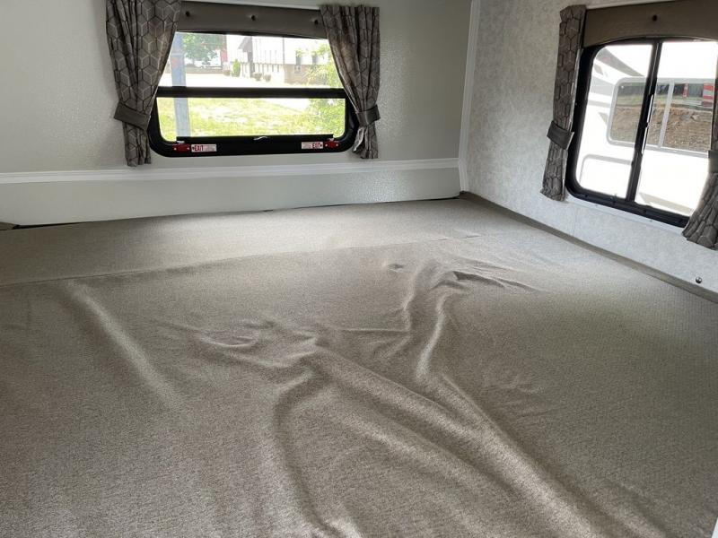 Equipped with aluminum wheels, air conditioner with built in heat strip, awning, digital antenna with booster, rear bike receiver, 100 watt solar panel, quick connect for gas grill, front window with curtains and stone guard, large and small hanging cabinets, furnace, 2 burner stove, 3-way refrigerator, gas/electric/dsi water heater, AM/FM radio with Bluetooth and more.