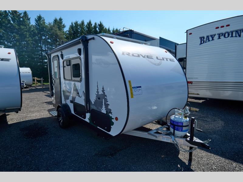 Each one of these Travel Lite Rove Lite travel trailers are crafted with an aerodynamic teardrop design with revolutionary Hyrdo-Lite material making them easy to tow with nearly every mid-size sedan vehicle! The Hydro-Lite construction makes them impervious to water with no wood substrate, moisture blocking gel coat fiberglass, Azdel and honeycomb composite, plus the sidewalls have two-pound fire-retardant block foam insulation that is impervious to heat. The on-demand tankless water heater provides quick hot water so you don't have to wait long for a nice, hot shower. You also have convenient features like a monitor panel, a battery disconnect switch, and 200-watt solar panels for going off grid. Come find your perfect model today!