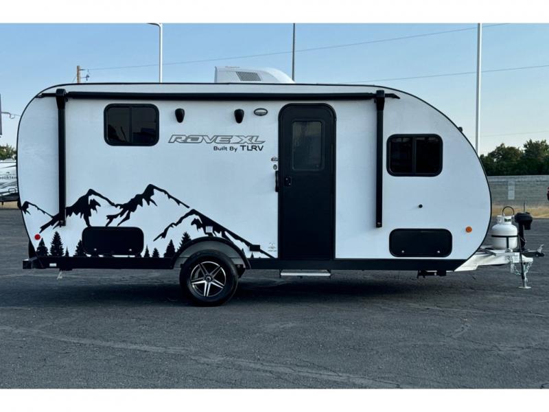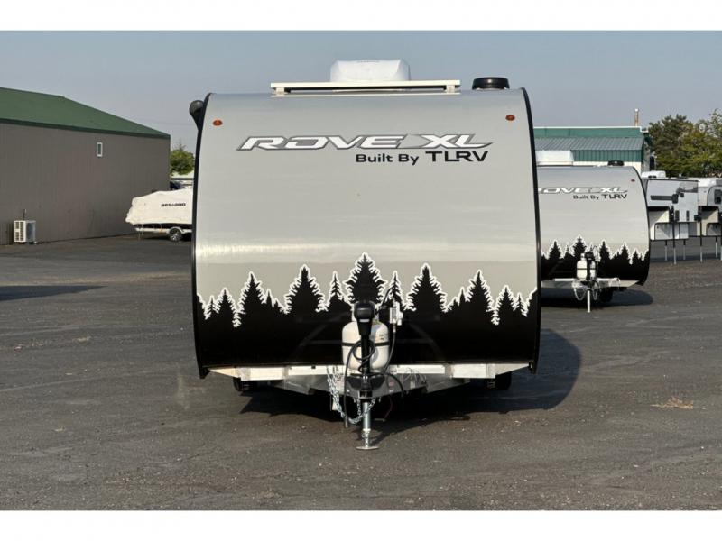 The Rove XL travel trailers by Travel Lite are ready for adventure when you are! Their two toned Hydro-Lite exterior, laminated floor construction, and aluminum roof structure make them durable and easy to tow. You will love the spacious interiors that allow you to relax comfortably and store your belongings. The 18K BTU furnace and A/C unit will keep you comfortable in spring or fall and the detachable 30 Amp power cord plus 200 watt solar panels will provide your power needs. Optional equipment that can be added include a 12' electric side awning, electric tongue jack, stereo with indoor/outdoor speakers, and more!