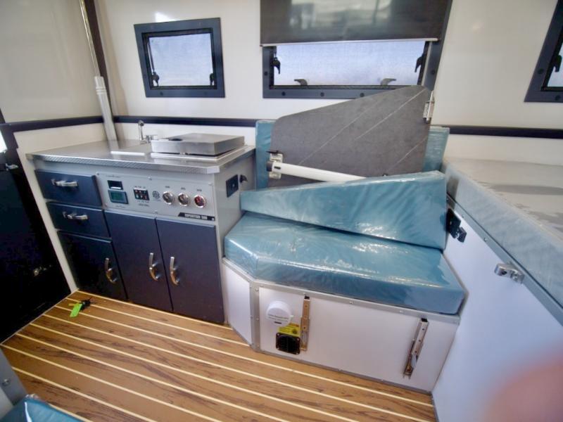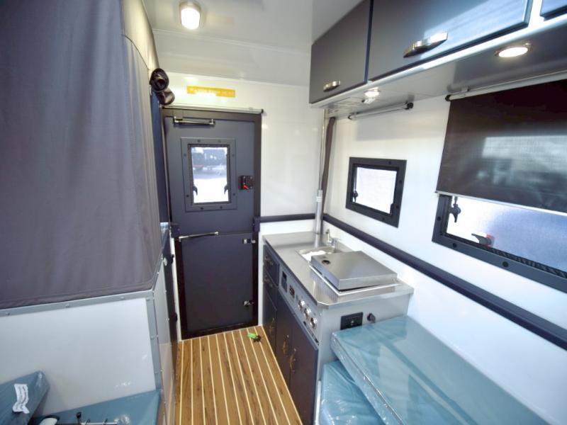 Step inside the Tribe Expedition 500 and experience a thoughtfully designed interior that maximizes comfort and functionality. The full-size convertible sleeping area ensures a restful night's sleep, while the complete bathroom offers the convenience of home amenities on the road. The indoor kitchen is well-equipped, allowing for easy meal preparation regardless of the weather outside. The spacious interior, combined with the practical layout, makes the Expedition 500 an ideal choice for extended camping trips, ensuring that you have all the comforts and conveniences needed for a memorable adventure.