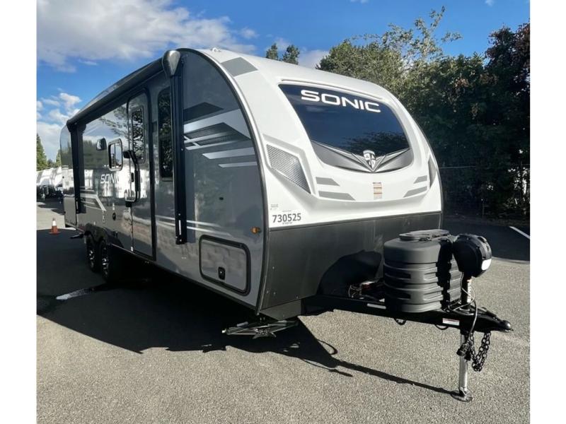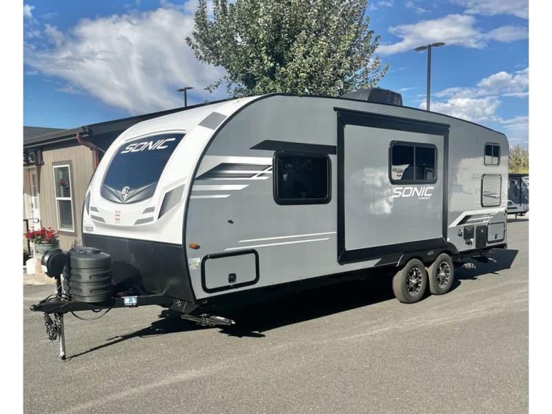 With any Sonic travel trailer by Venture RV, you begin with Next Generation in RV frame technology with the NXG Huck-bolt frame, AZDEL Onboard composite panels, tongue and groove plywood floor decking, radiant foil bubble insulation-wrapped tanks, 360-degree residential fiberglass insulation and radiant foil insulation, plus a forced-air heated and enclosed underbelly which is part of the Weather-Shield package. There is a Highway Package that comes mandatory, and the Discovery Package 1.4 provides a motion light in the bathroom, a dish drying sink cover, and the Venture LevelMate Pro, a power tongue jack, and WIFI prep to mention a few features. Get ready for comfort and style in a Sonic ultra-lightweight, tandem-axle travel trailer of your choice!