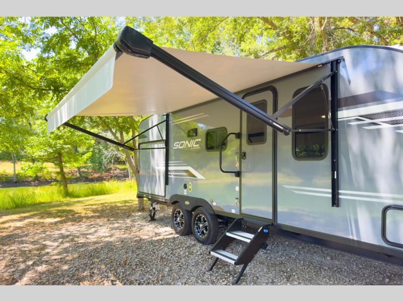 With any Sonic travel trailer by Venture RV, you begin with Next Generation in RV frame technology with the NXG Huck-bolt frame, AZDEL Onboard composite panels, tongue and groove plywood floor decking, radiant foil bubble insulation-wrapped tanks, 360-degree residential fiberglass insulation and radiant foil insulation, plus a forced-air heated and enclosed underbelly which is part of the Weather-Shield package. There is a Highway Package that comes mandatory, and the Discovery Package 1.4 provides a motion light in the bathroom, a dish drying sink cover, and the Venture LevelMate Pro, a power tongue jack, and WIFI prep to mention a few features. Get ready for comfort and style in a Sonic ultra-lightweight, tandem-axle travel trailer of your choice!