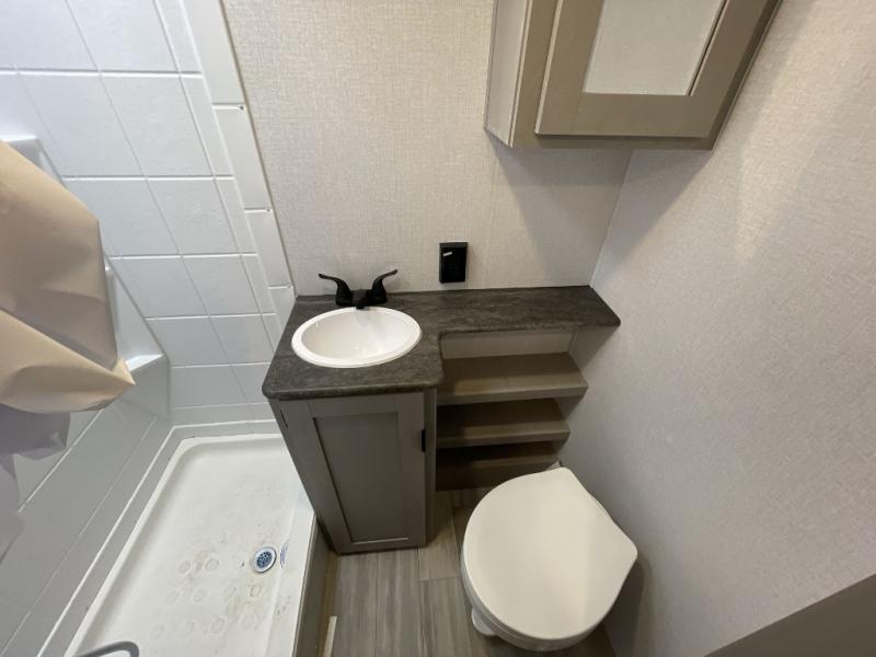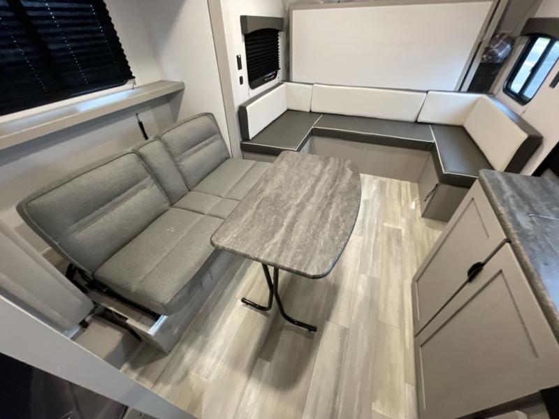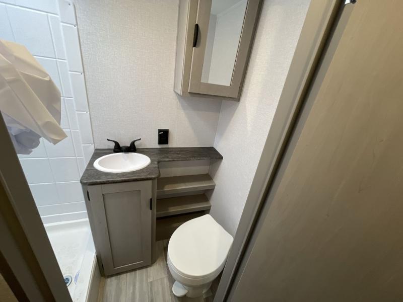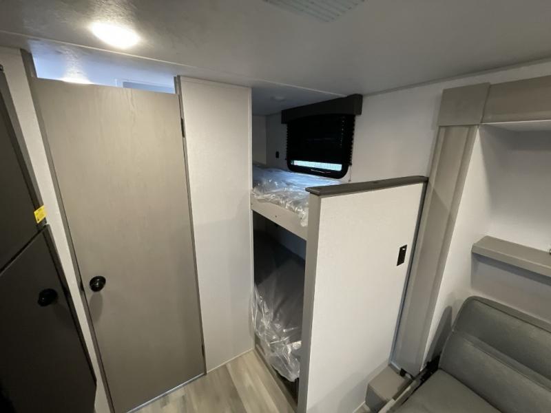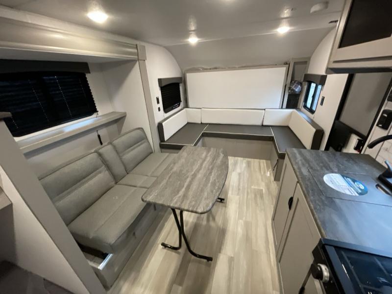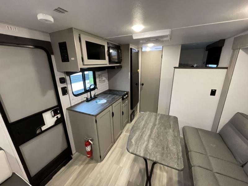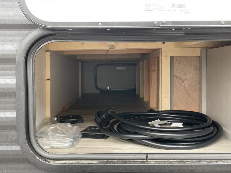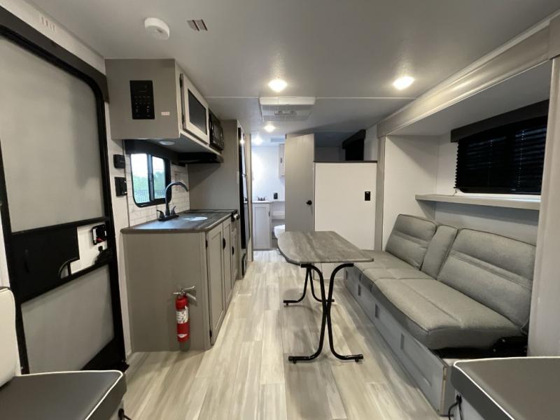 You will love all of the versatility provided with this travel trailer! The front U-shaped dinette is not only great for enjoying meals at, but also for transforming into a 54" x 74" Murphy bed for a good night's rest. There are other sleeping spaces as well with the set of 28" x 68" bunk beds and jackknife sofa slide. Everyone can rinse the sand out of their hair with the 24" x 36" shower in the rear corner bathroom, and fill their bellies with a delicious meal prepared on the two burner cooktop. The exterior pass-through storage area is big enough to store all of your essential camping gear too!