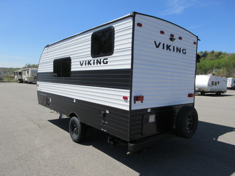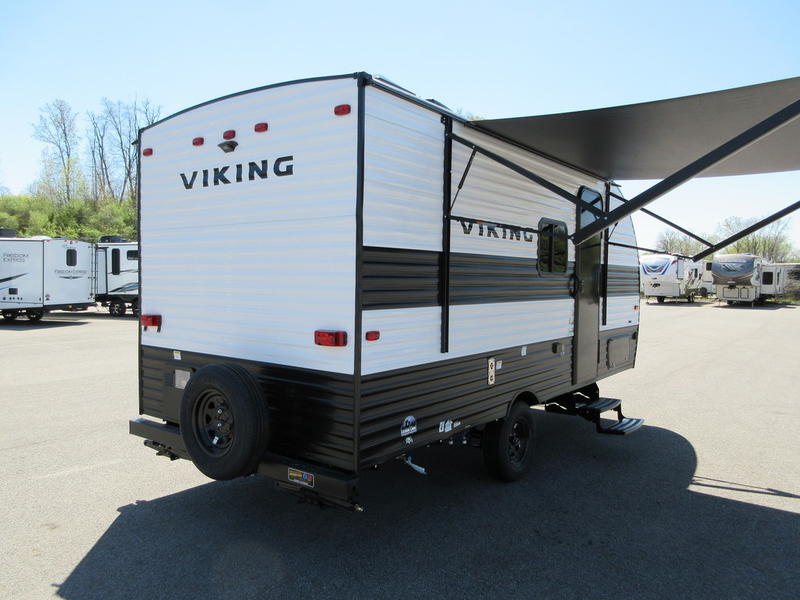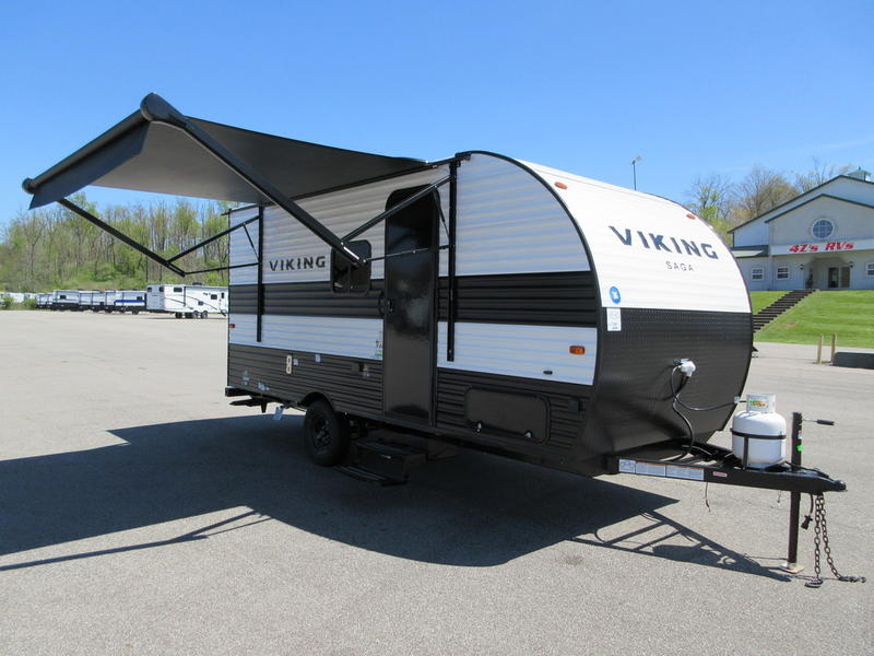 The budget-friendly Viking Saga travel trailers are for the newbie or seasoned RV user. Each model is constructed with a BAL NXG frame with Huck bolt assembly and front diamond plating so that your trailer will last. Towing and setup is made hassle-free with self-adjusting electric brakes, Easy Lube axles, and two rear stabilizing jacks. The Saga travel trailers include seamless countertops, a two burner cooktop, sink cover, and a bath skylight for adding natural lighting. You will also find a jumbo pass-through storage, USB charging ports to keep your electronics charged, plus both back up camera and solar prep.