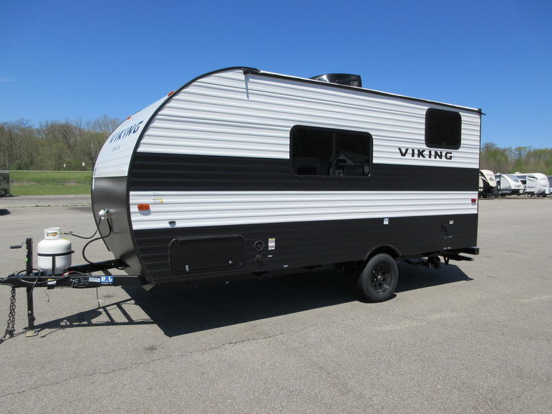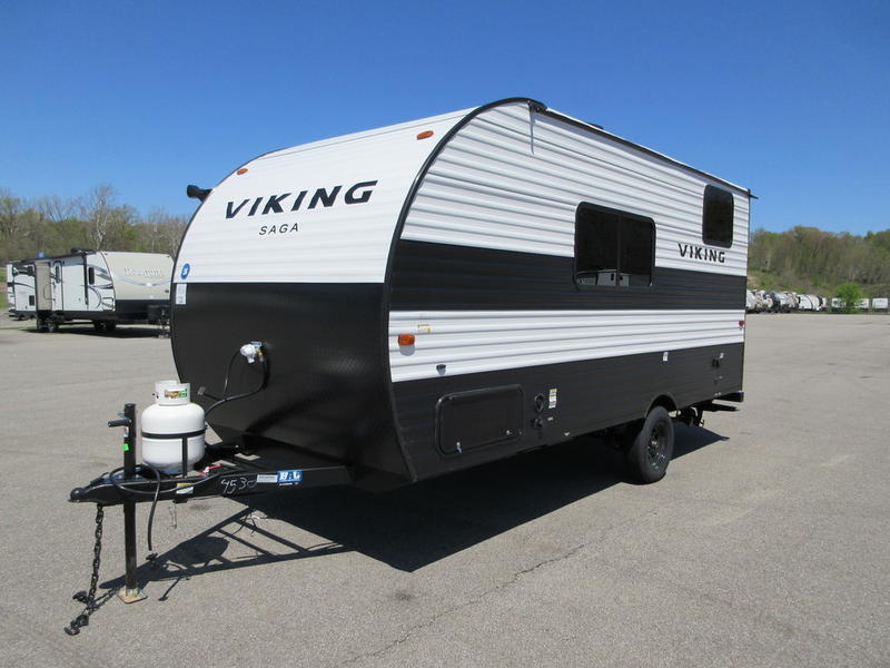 The budget-friendly Viking Saga travel trailers are for the newbie or seasoned RV user. Each model is constructed with a BAL NXG frame with Huck bolt assembly and front diamond plating so that your trailer will last. Towing and setup is made hassle-free with self-adjusting electric brakes, Easy Lube axles, and two rear stabilizing jacks. The Saga travel trailers include seamless countertops, a two burner cooktop, sink cover, and a bath skylight for adding natural lighting. You will also find a jumbo pass-through storage, USB charging ports to keep your electronics charged, plus both back up camera and solar prep.