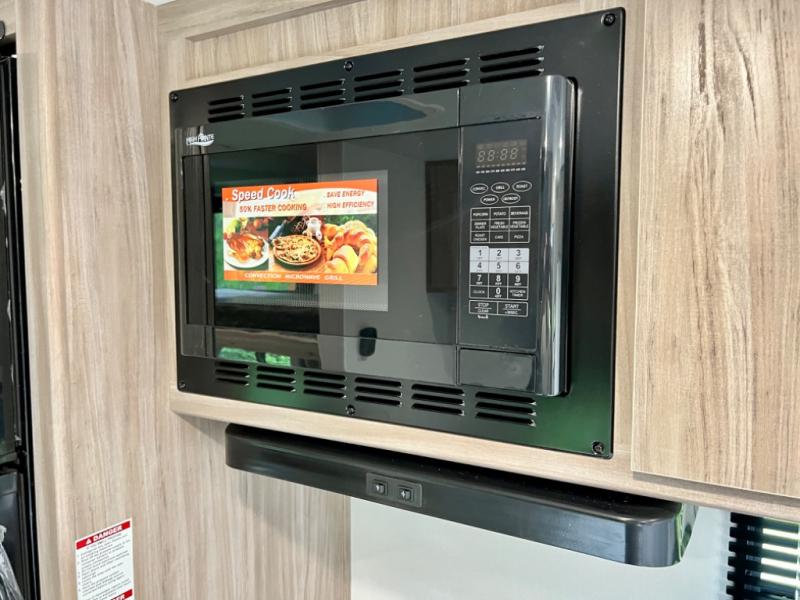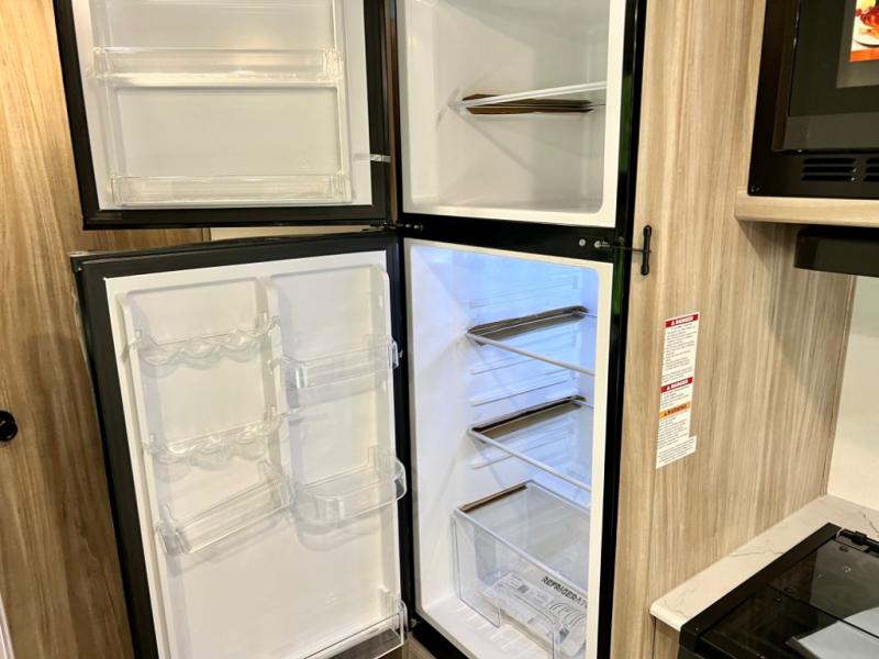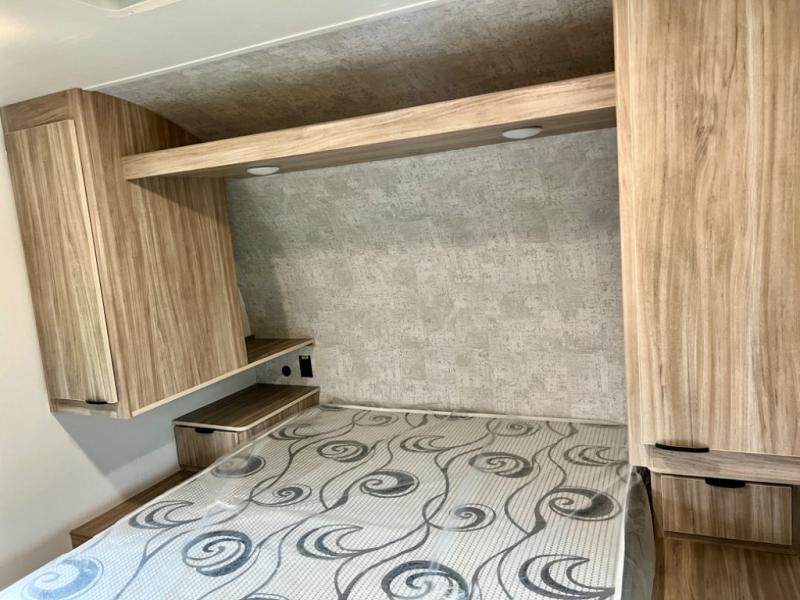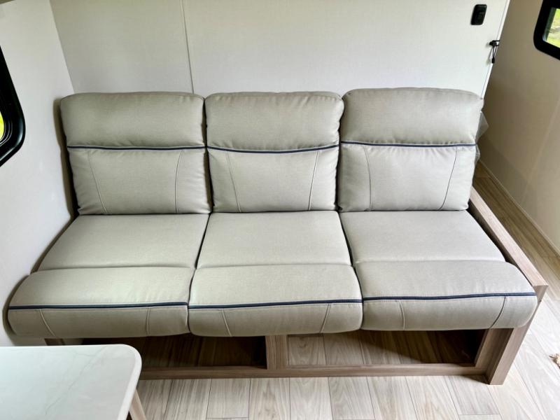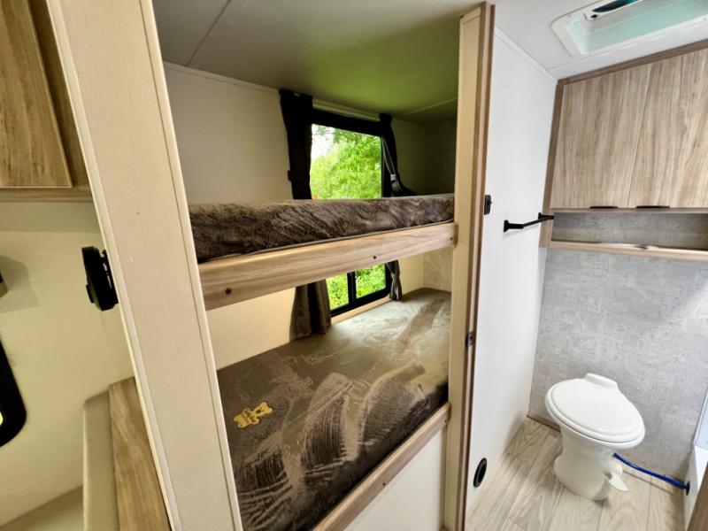 Your family of eight will enjoy camping in this Access camper. You will have the choice of cooking both inside and out with the accessible outdoor kitchen featuring a pull-out griddle, 1.6 cu. ft. refrigerator and handy pull-out 11.75" x 20" drawer for cooking utensils, hot pads, etc. On the inside, a three burner cooktop makes whipping up family meals a breeze and there is a 10.3 cu. ft. refrigerator as well. For sleeping, your family will find comfort in a set of 32" x 74" bunks, a booth dinette that can also be transformed into sleeping for two at night, plus the jack knife sofa and private bedroom which features a queen bed up front. Storage is abundant and can be found throughout in overhead cabinets, bedside wardrobes, and under the queen bed. On the exterior, you will also find a convenient exterior pass through storage compartment for lawn chairs, outdoor games, fishing poles, etc.