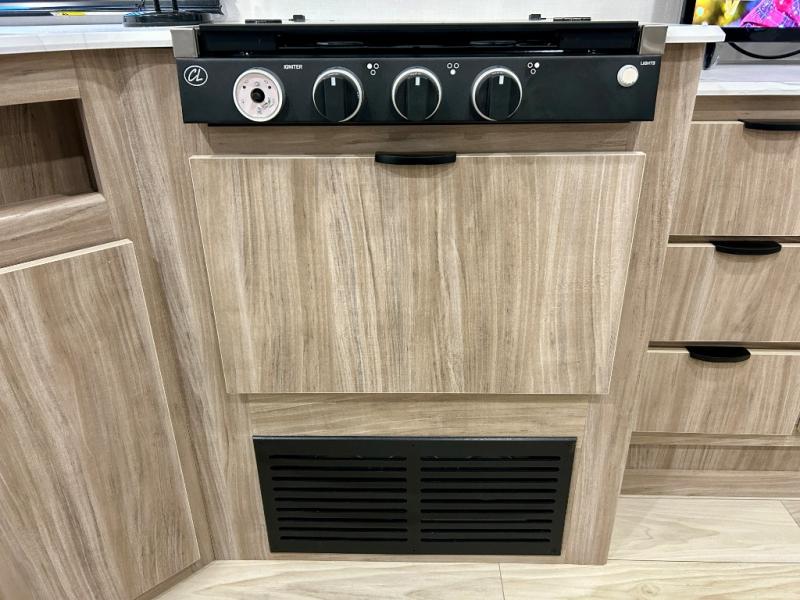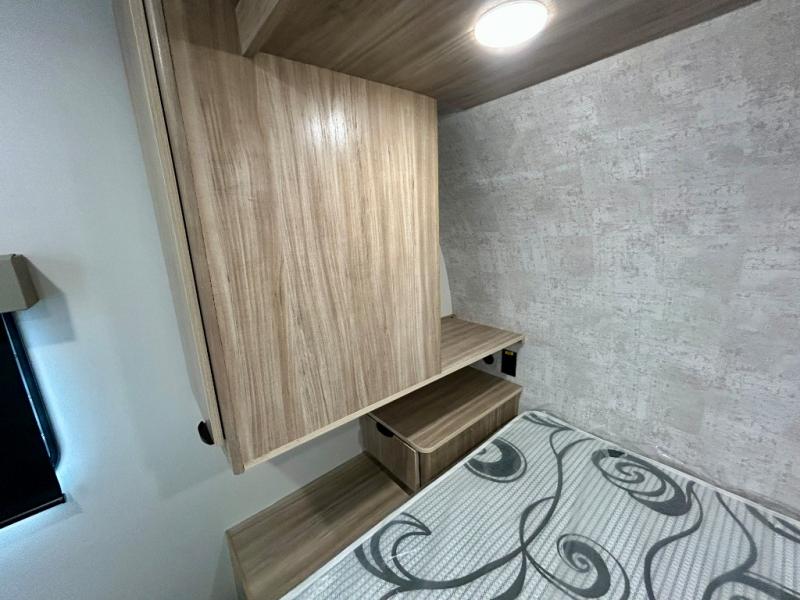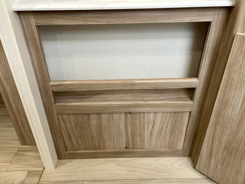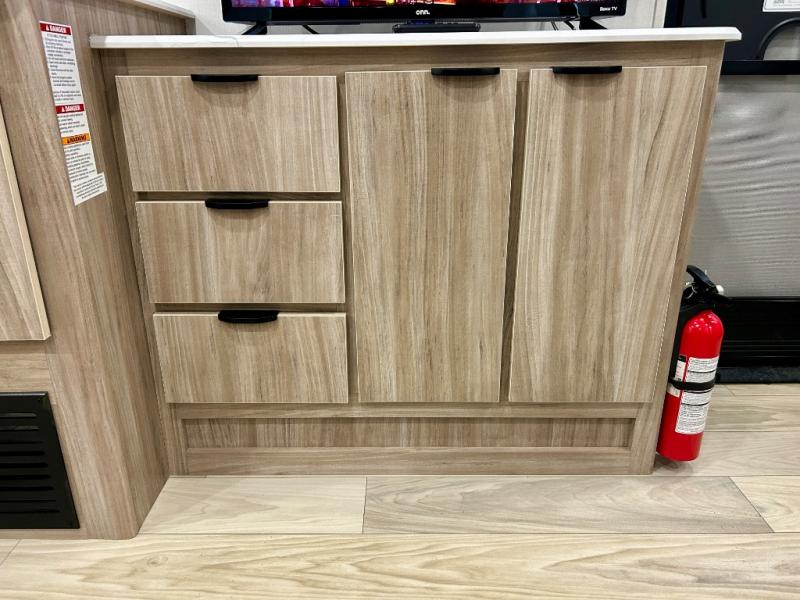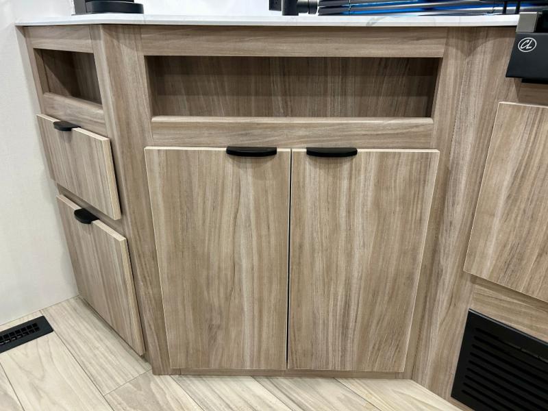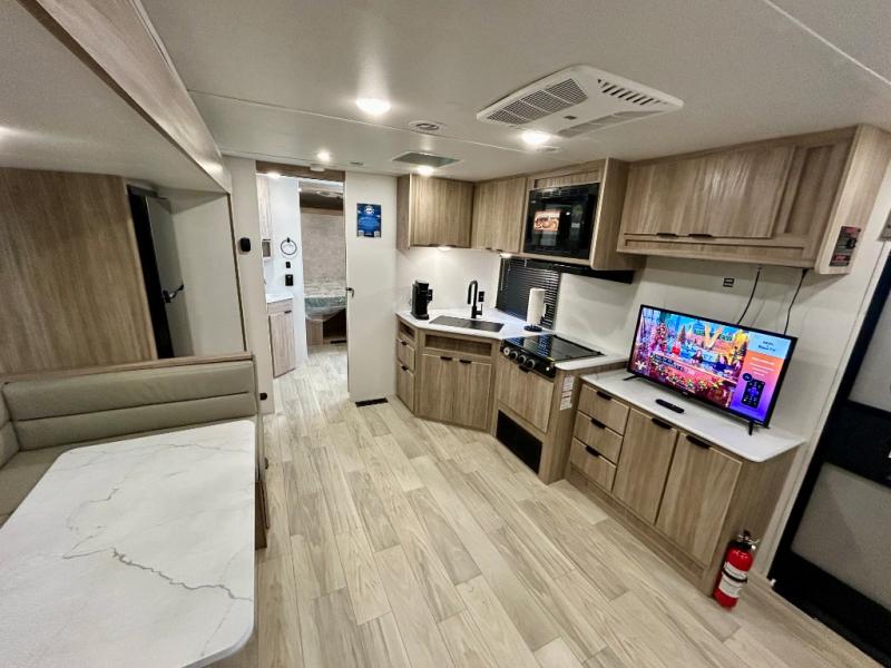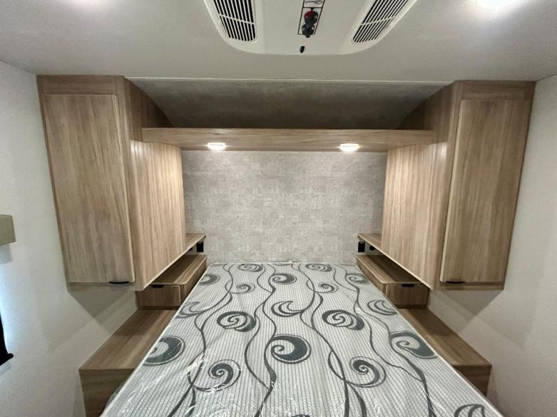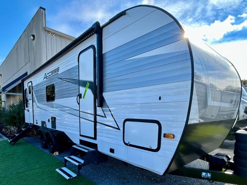 This single slide Access travel trailer offers you a great home on wheels featuring dual entry doors, a spacious walk-thru bath, and private front bedroom with private entry. You will find the main combined living area and kitchen open and spacious thanks to the slide. Cook your family their favorite meals with the appliances inside, dine at the U-shaped dinette where you can add an optional TV opposite if you like. A convenient walk-through bath is spacious enough for two to get ready at once since it is the full width of the trailer. Next, head through space saving sliding doors to the front private bedroom with its own access to the outside through the second entry. Here a queen bed awaits for a great nights rest. This bedroom offers plenty of storage in bedside wardrobes, under bed storage for extra blankets and larger items, plus so much more!