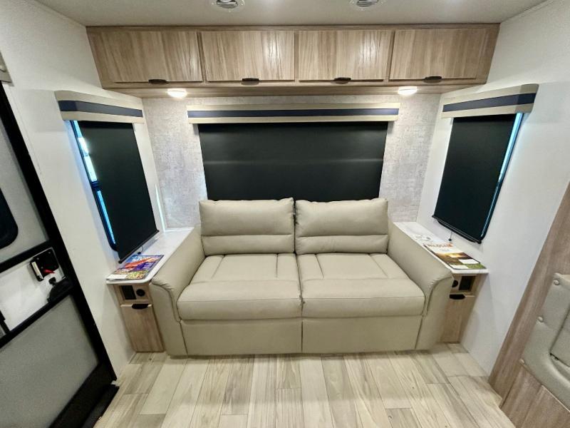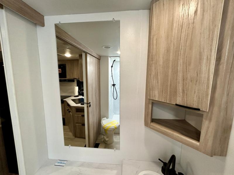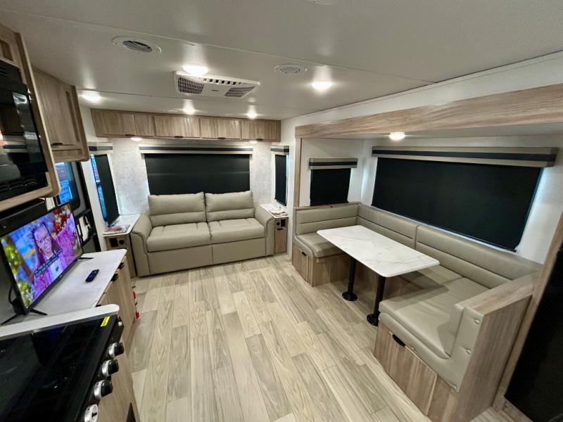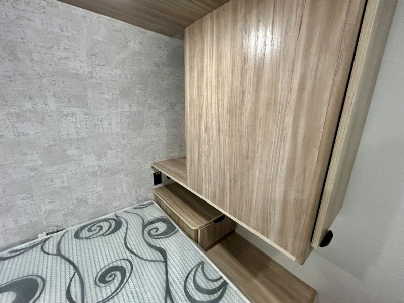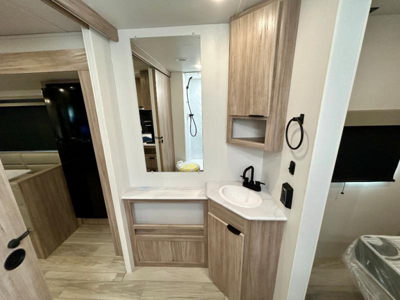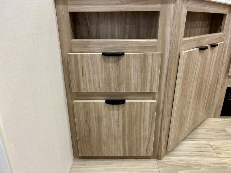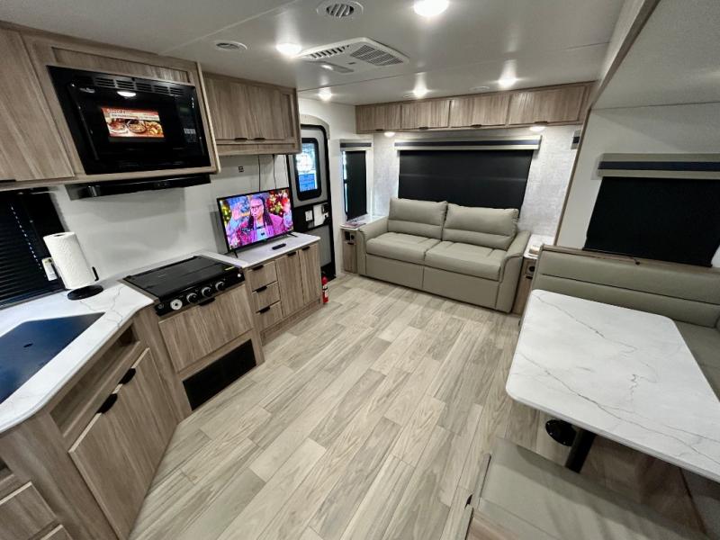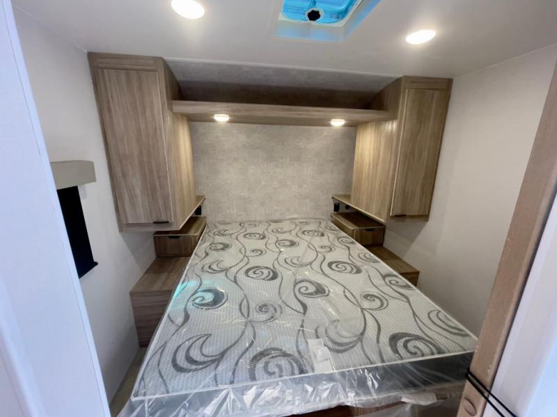 This single slide Access travel trailer offers you a great home on wheels featuring dual entry doors, a spacious walk-thru bath, and private front bedroom with private entry. You will find the main combined living area and kitchen open and spacious thanks to the slide. Cook your family their favorite meals with the appliances inside, dine at the U-shaped dinette where you can add an optional TV opposite if you like. A convenient walk-through bath is spacious enough for two to get ready at once since it is the full width of the trailer. Next, head through space saving sliding doors to the front private bedroom with its own access to the outside through the second entry. Here a queen bed awaits for a great nights rest. This bedroom offers plenty of storage in bedside wardrobes, under bed storage for extra blankets and larger items, plus so much more!