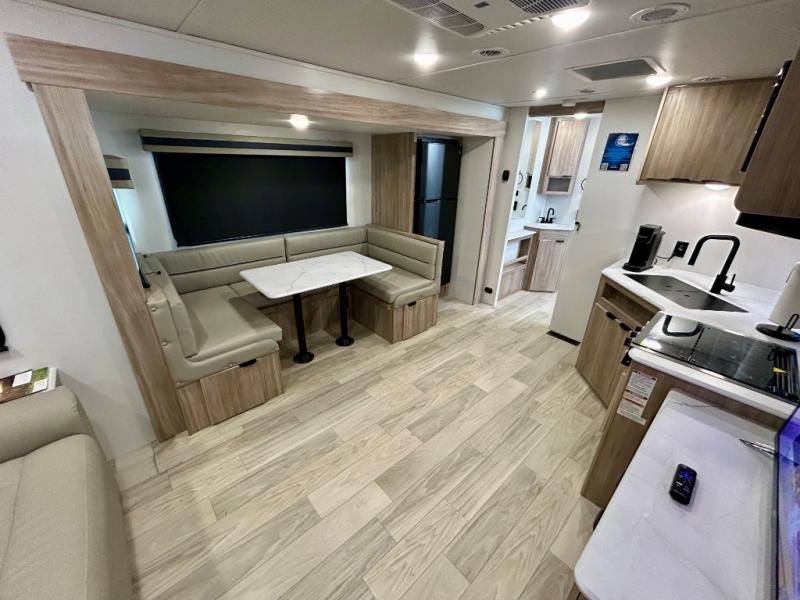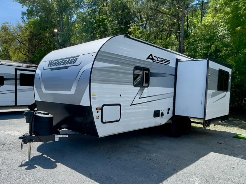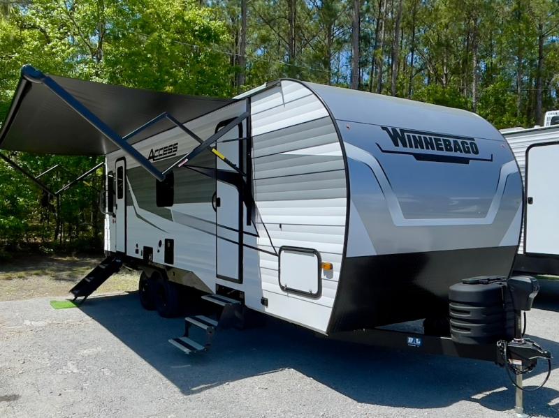 With any Winnebago Access travel trailer you will find thoughtful, clean, and contemporary designs filled with premium features that all have come to expect on any Winnebago towable. You will appreciate the stylish exterior aerodynamic front profile and durable sidewall metal for greater aerodynamics plus strength and durability. With a fully enclosed underbelly that comes with radiant foil insulation, you can easily extend your camping season into the colder months without worrying about having frozen pipes. On the inside, a foot flush toilet, roller shades, abundant storage, and spacious living areas making every camping trip more enjoyable. Make your choice today and Access your next adventure!